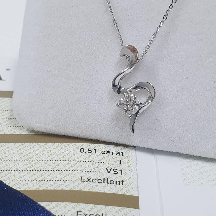 全新品GIA鑽石項鍊 天鵝半繞心款 主鑽51分 J色VS1 3EX完美車工 8心8箭 750K金墜台 墜2.1x1cm 重0.53錢 白金項鍊 GIA證書 精美盒裝