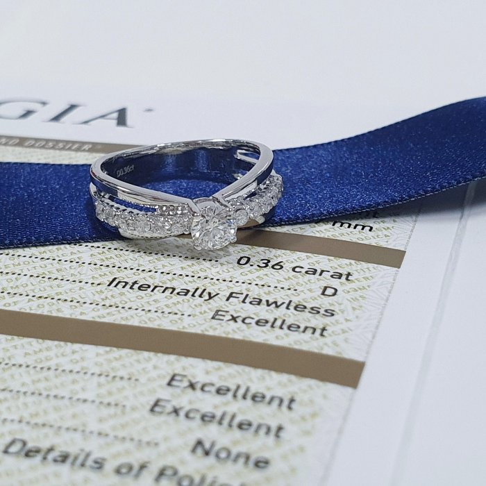 全新品 GIA鑽石女戒 優雅唯美 主鑽36分 最高D色 高淨度IF 8心8箭 3EX完美車工 585K金戒台 配鑽約0.20ct 國際圍10.5號 面寬0.6cm 總重0.98錢 附GIA證書 精美盒裝