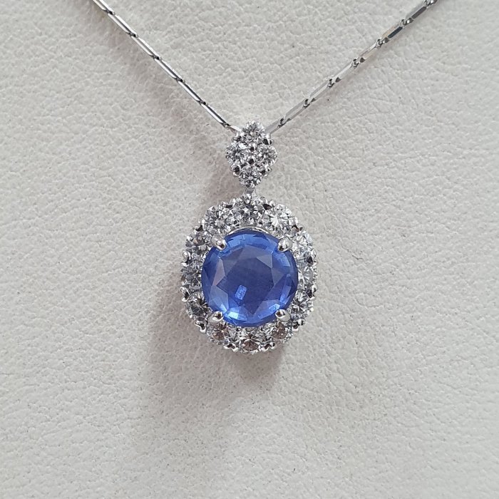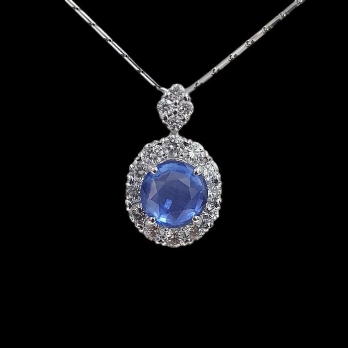 PT900白金鑽石墜台 / 配鑽約0.90ct / 墜1.9x1.2cm / 明亮圓型切割 / 無燒藍寶 |