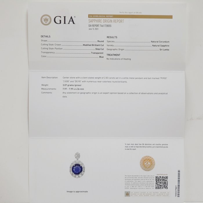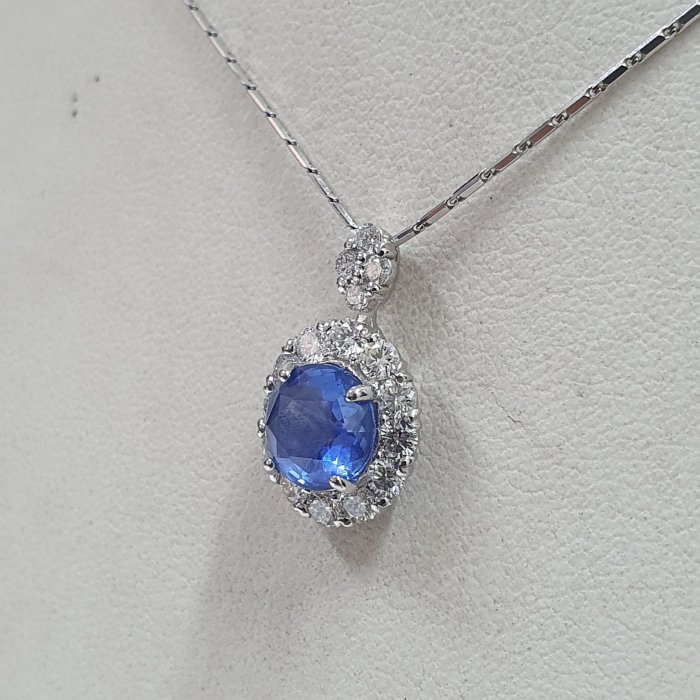 GIA 斯里蘭卡 天然藍寶石墜 無燒藍寶 藍寶2.83克拉 明亮圓型切割 PT900白金鑽石墜台 配鑽0.90ct 墜1.9x1.2cm 附GIA證書精美盒裝