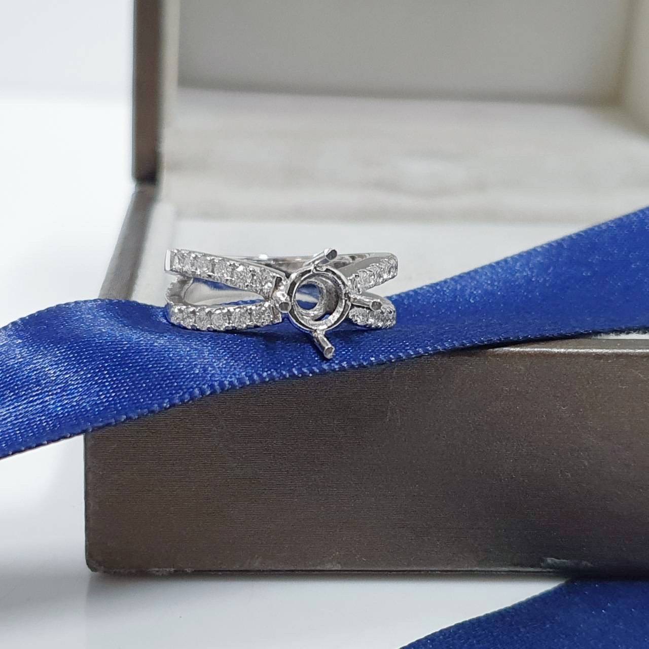 全新品 天然鑽石女戒空台 適用1~1.5克拉 雙排鑽交叉造型 PT950鉑金戒台 配鑽約0.71ct 國際圍11號 面寬0.7cm 重2.22錢 精美盒裝 店保卡