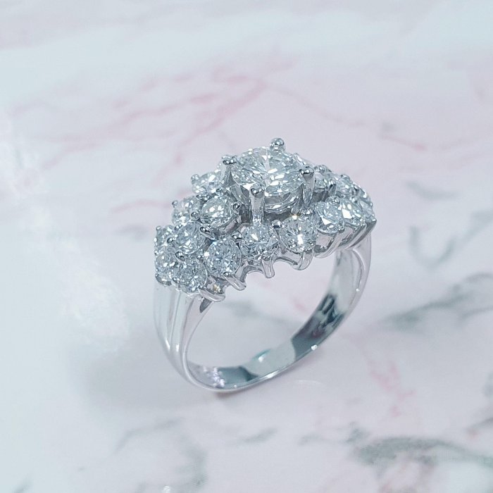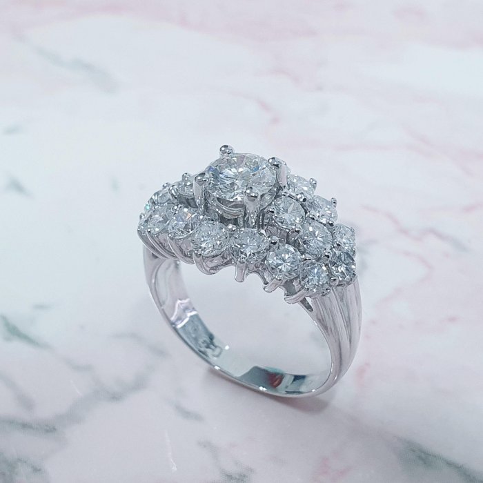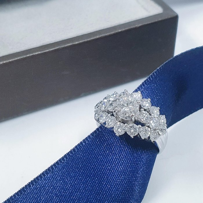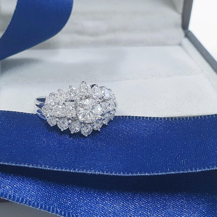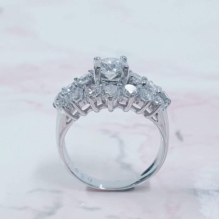 天然鑽石女戒 豪華大顆配鑽 主鑽60分 585K金鑽石台 配鑽約2ct 國際圍10.5號 面寬1.32cm 總重1.29錢 附精美盒裝 店保卡