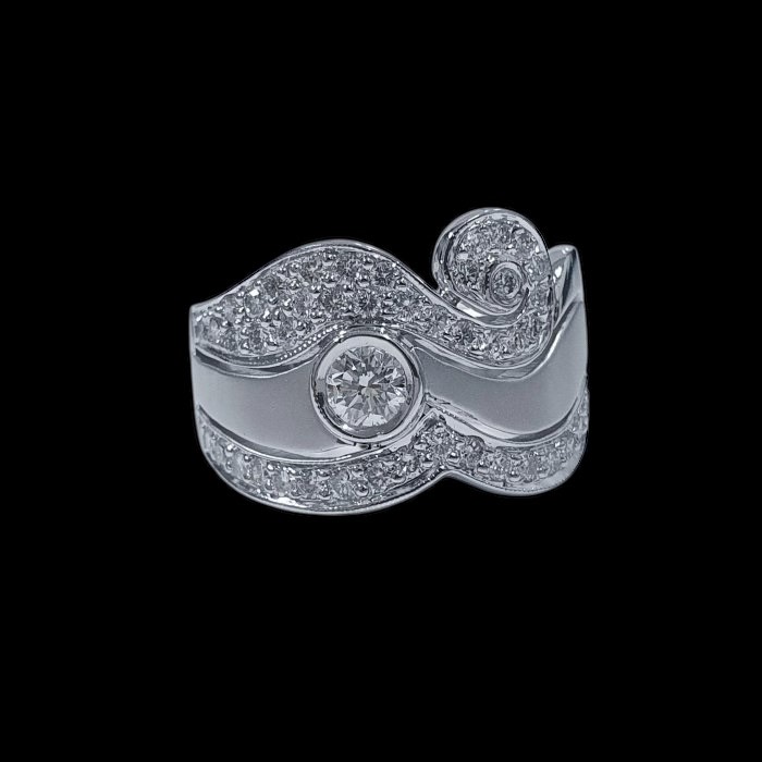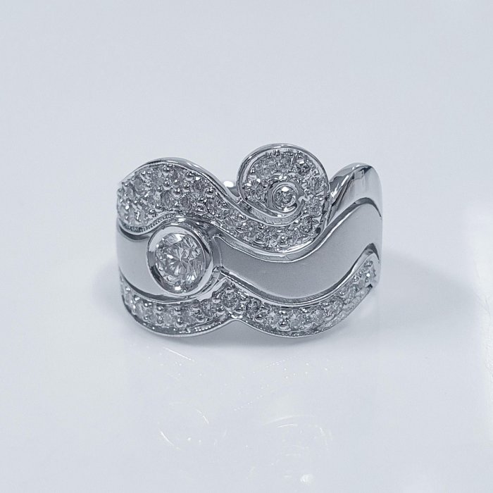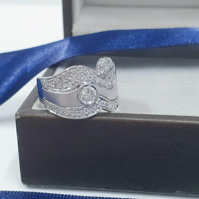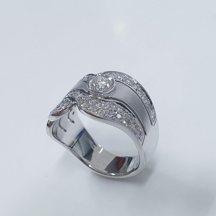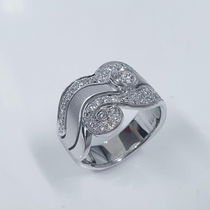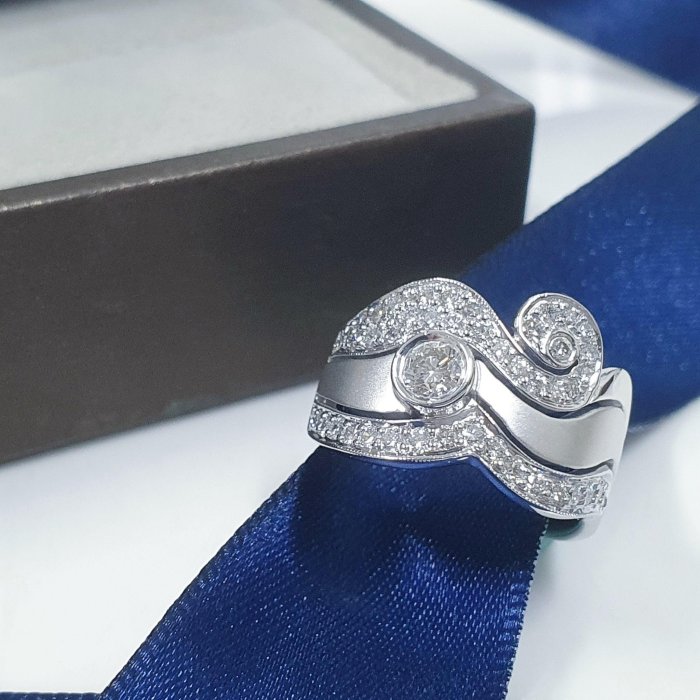 750K金戒台 / 國際圍12號 / 面寬1.3cm / 配鑽約0.36ct / 重2.3錢 |