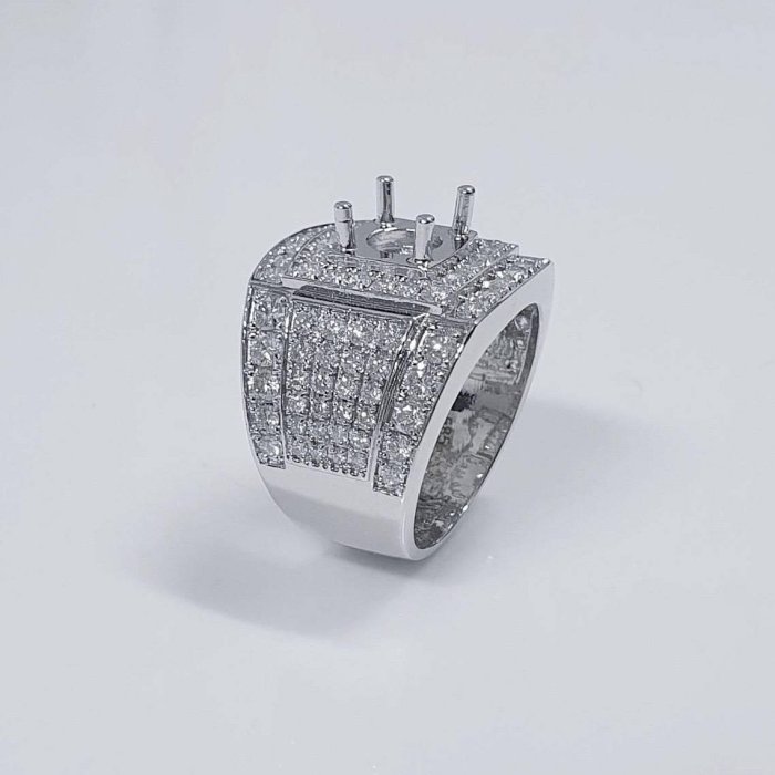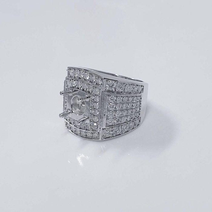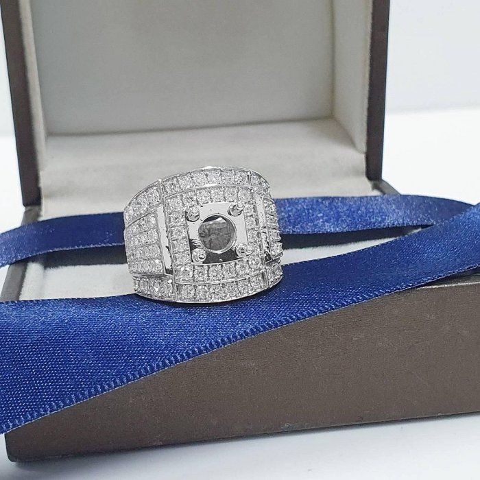 全新品 天然鑽石男戒空台 適用2~2.5克拉 霸氣豪華 14K金戒台 配鑽約2.55ct 國際圍15號 面寬1.9cm 重3.64錢 精美盒裝 店保卡