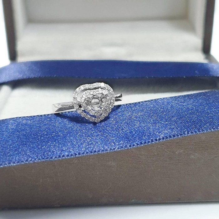 天然鑽石女戒空台 雙愛心鑽圈 |