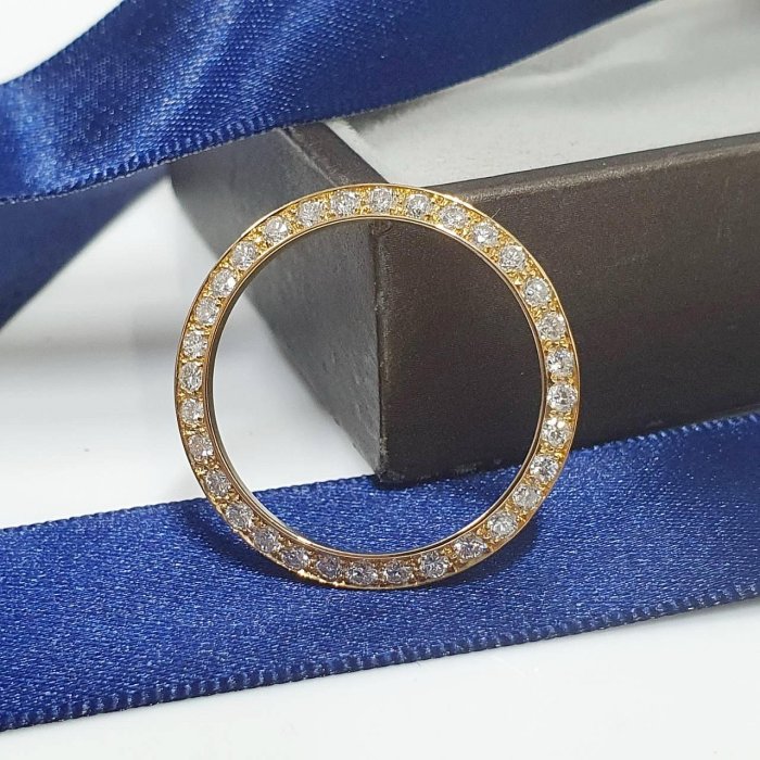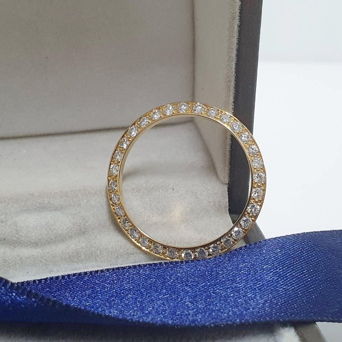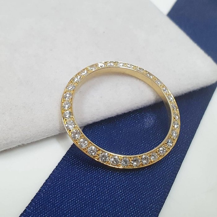 69178 68173 適用26mm 精鑲天然鑽石錶圈 大顆鑽 火光閃耀 鑽石32顆 每顆約3分 共約0.96ct 黃K金材質 總重0.74錢 精美盒裝 店保卡