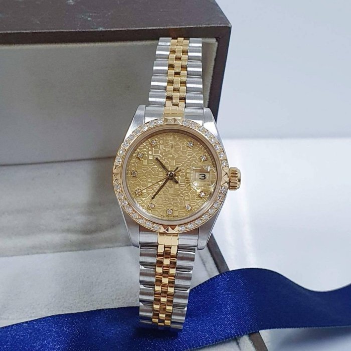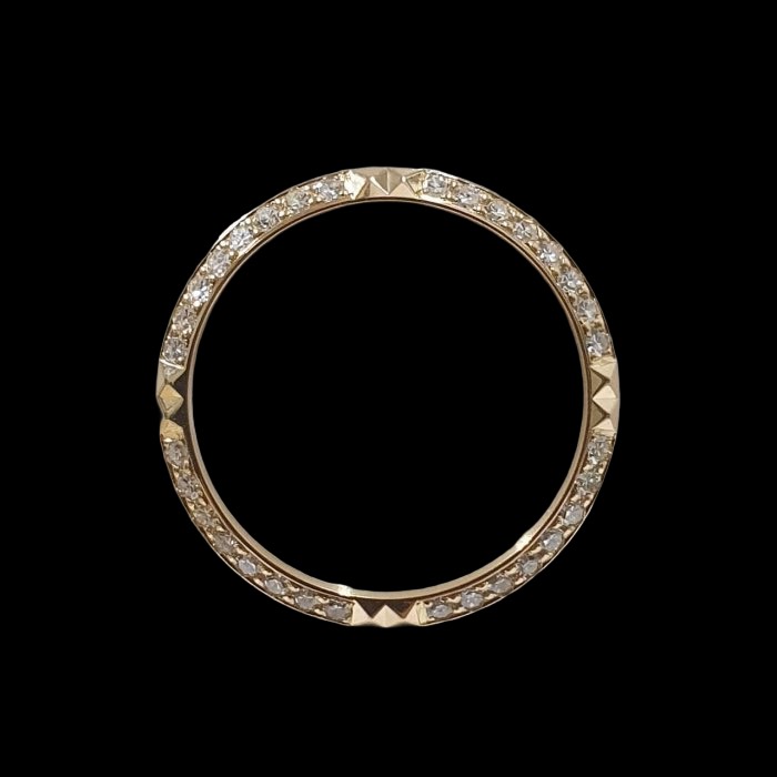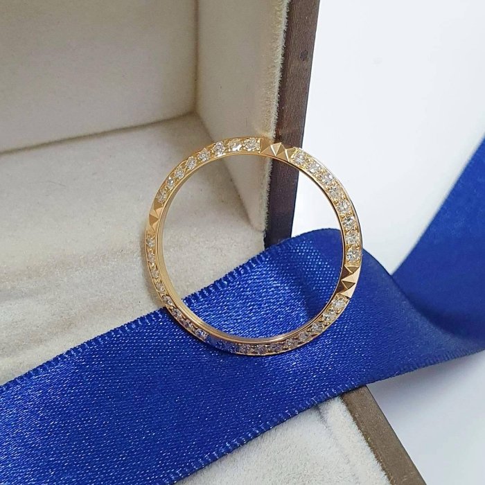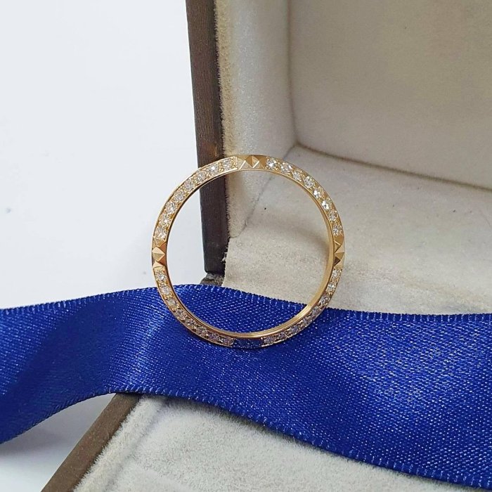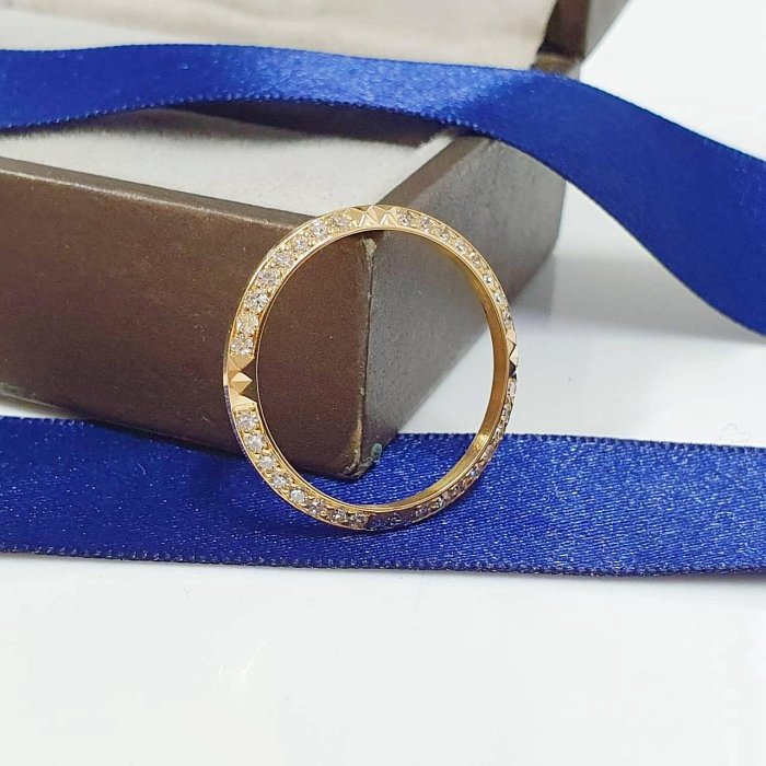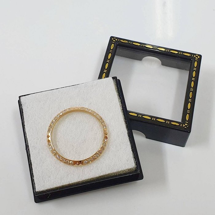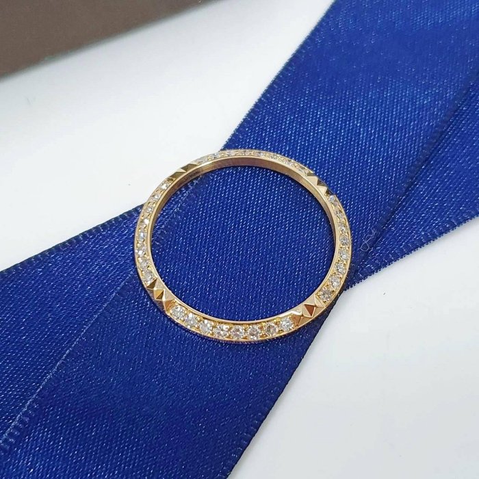 69173 69178 適用女錶26mm 精鑲鑽石錶圈 金字塔框 鑽石32顆 每顆約2分 共約0.64 總重0.75錢 黃K金材質 精美盒裝 店保卡