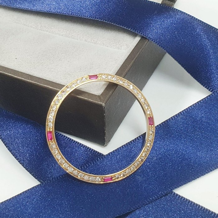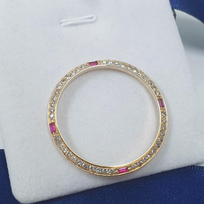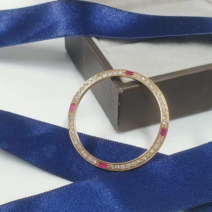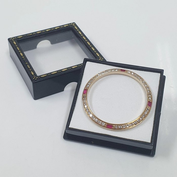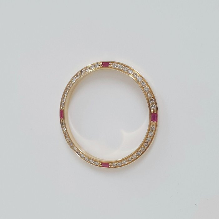 16233 18238 男用36mm 精鑲天然紅寶石鑽圈 鑽石44顆 每顆2分 共約0.88克拉 黃K金材質 總重1.42錢 精美盒裝 店保卡
