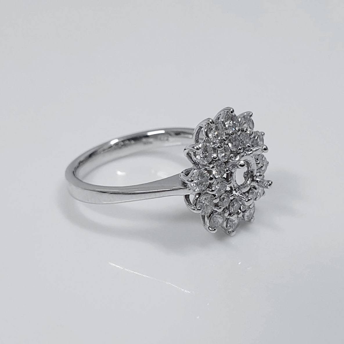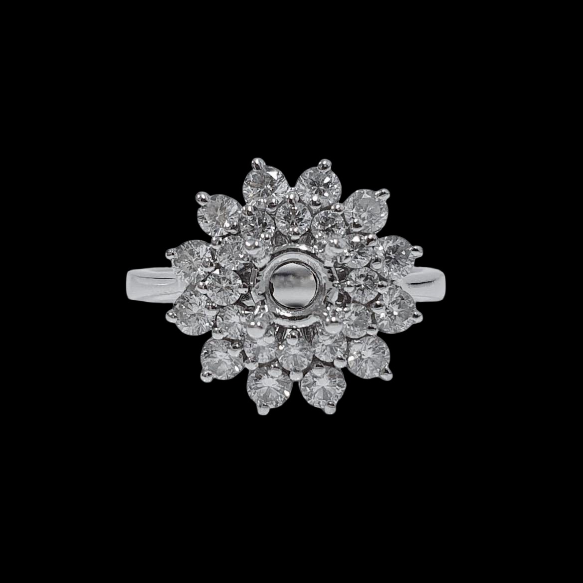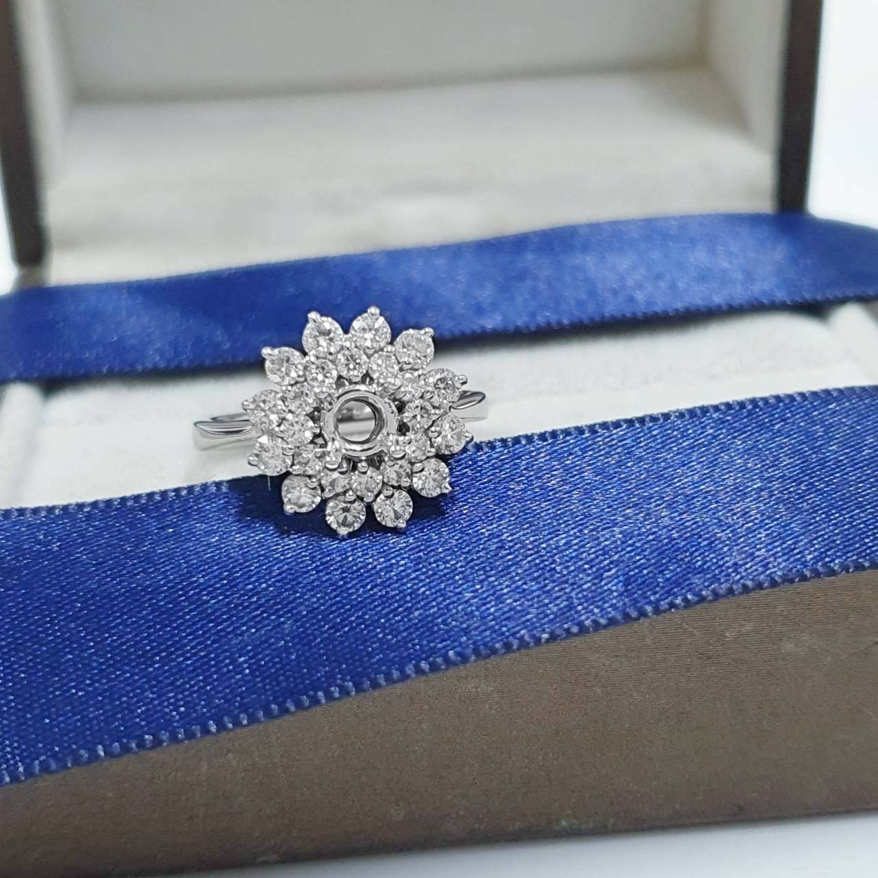 全新品 天然鑽石女戒空台 適用0.50~0.70克拉 豪華盛花 18K金戒台 配鑽約0.62ct 國際圍11號 面寬1.4cm 重1.37錢 精美盒裝 店保卡