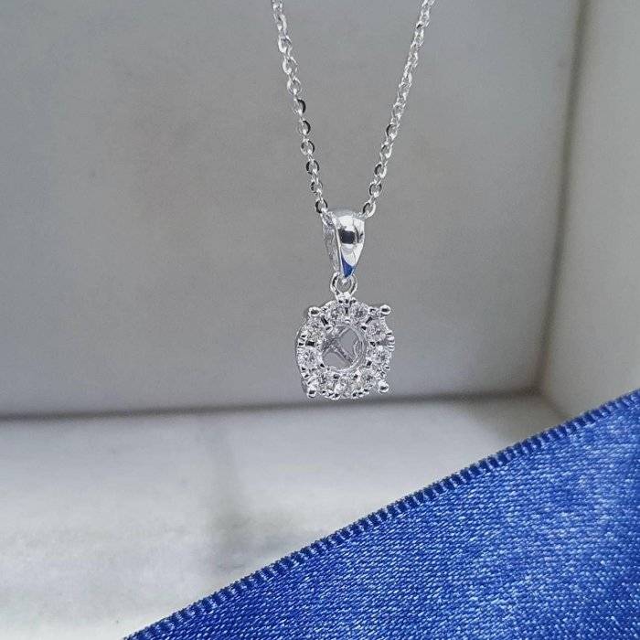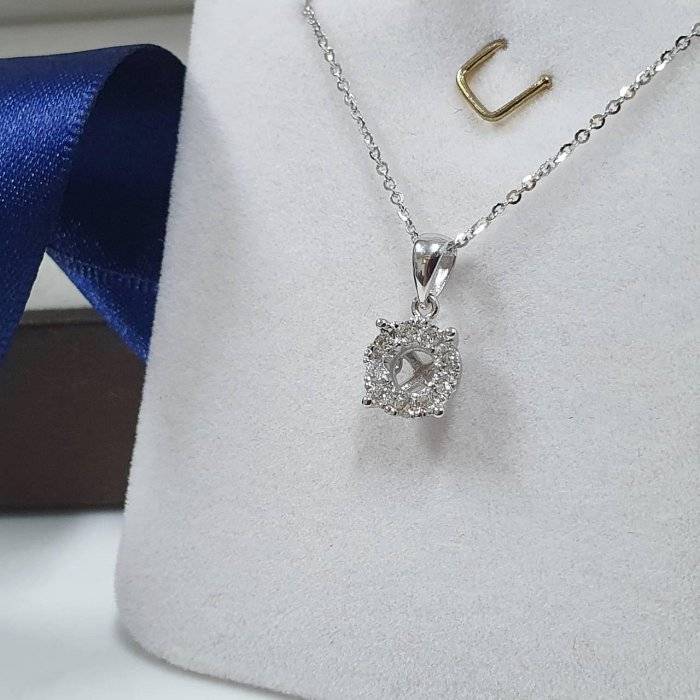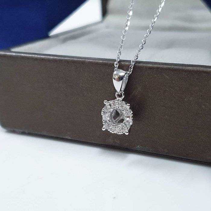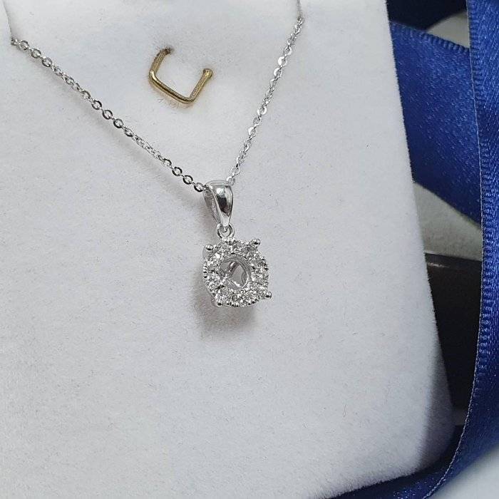 全新品 天然墜飾空台 適用50-80分 鑽框放大款 有色寶石皆可使用 750K金墜台 配鑽約0.13ct 墜1.4x0.75cm 重0.29錢 不含鍊 精美盒裝 店保卡