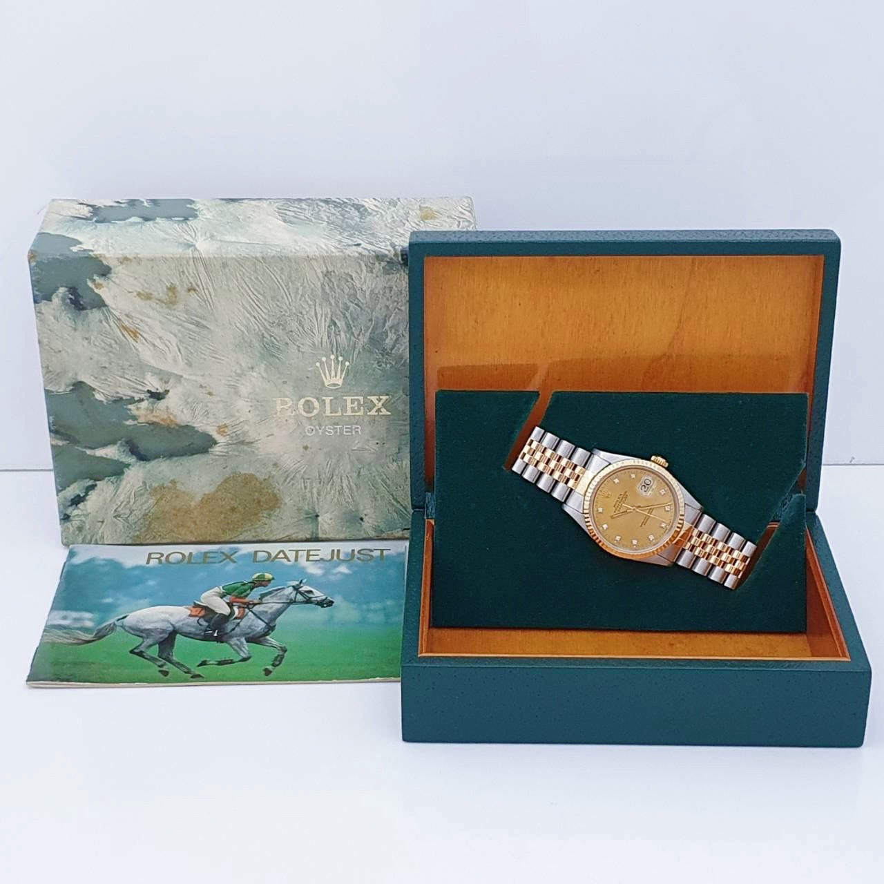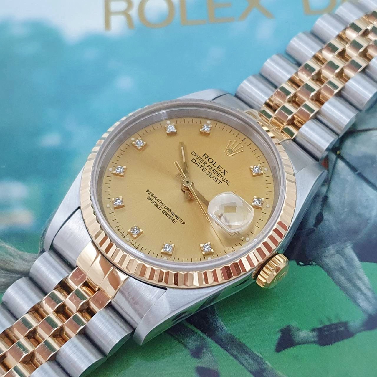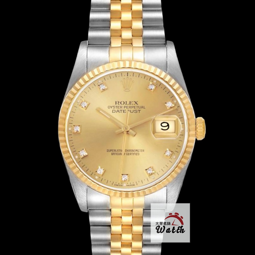 ROLEX勞力士 16233 Datejust 蠔式日誌 金色面盤 鑽石時標 錶徑36mm 自動上鍊 18K金及不鏽鋼 防水100米 S字頭 缺證書 原廠盒裝 店保卡 保養完成