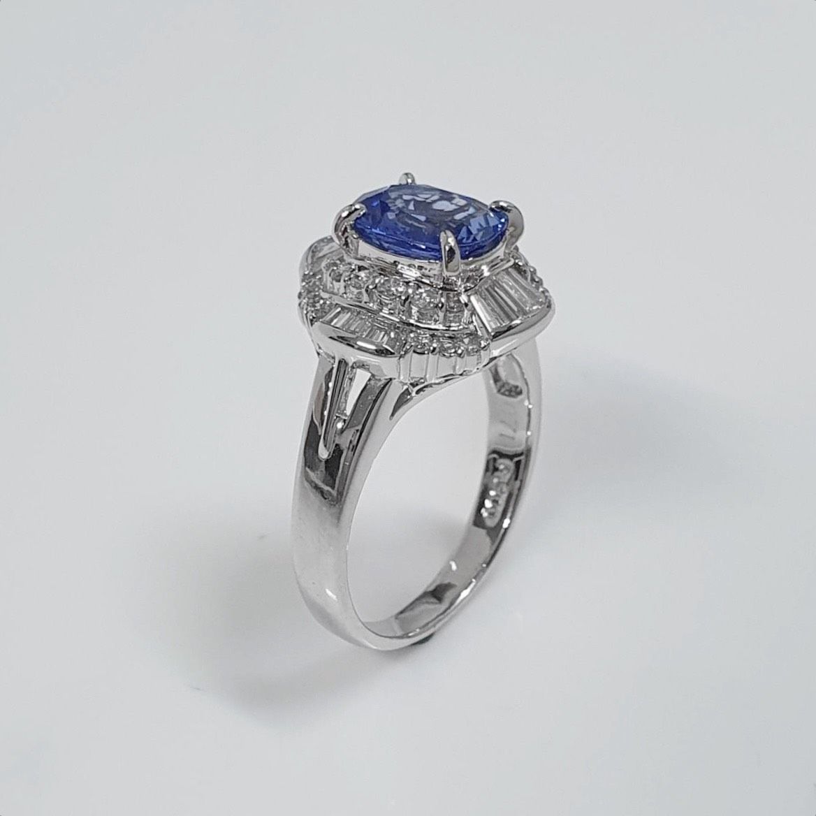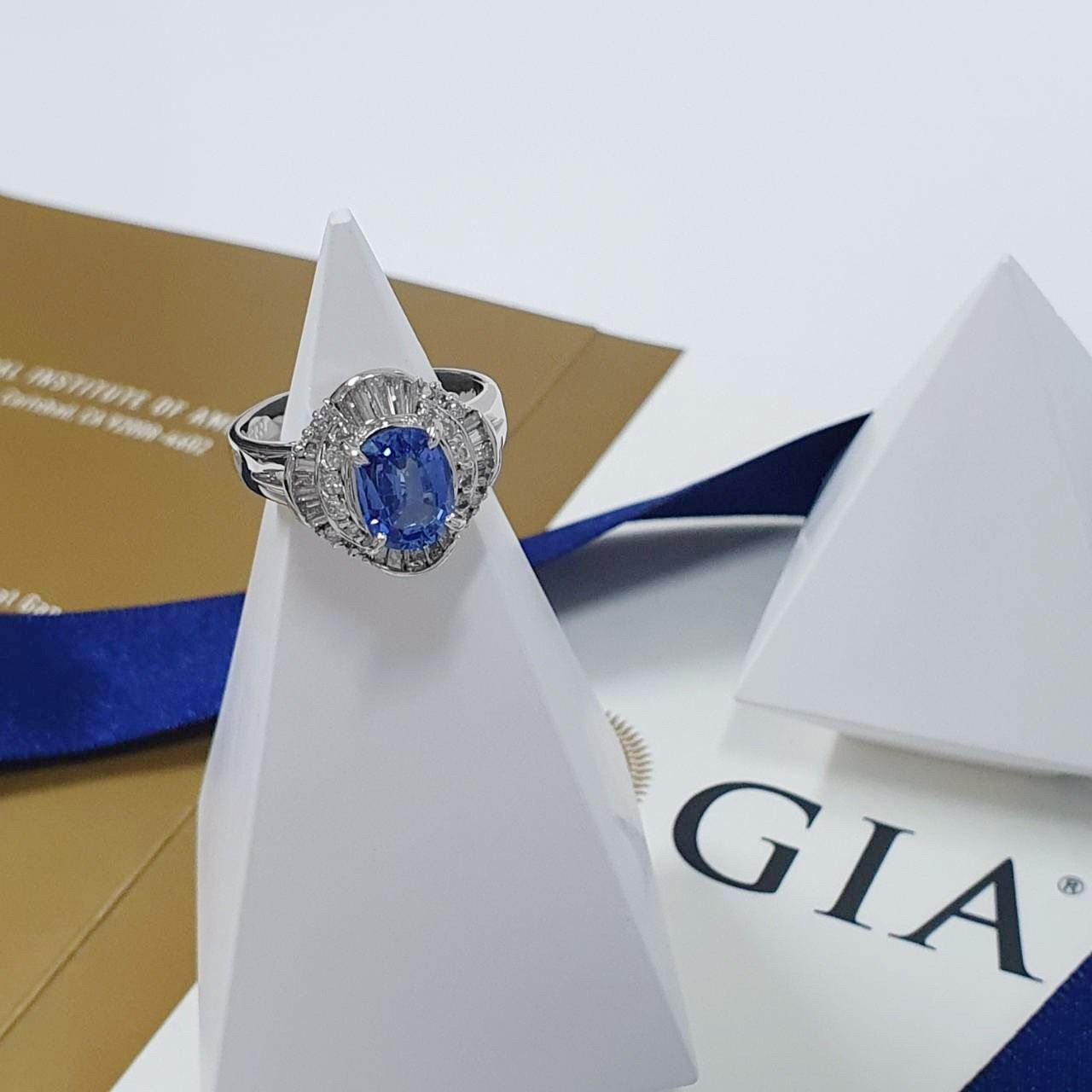 天然GIA藍寶石戒指 氣質非凡 藍寶石1.70克拉 PT900鉑金材質 配鑽約0.71ct 國際圍12號 面寬1.45cm 總重1.99錢 GIA證書 精美盒裝 店保卡