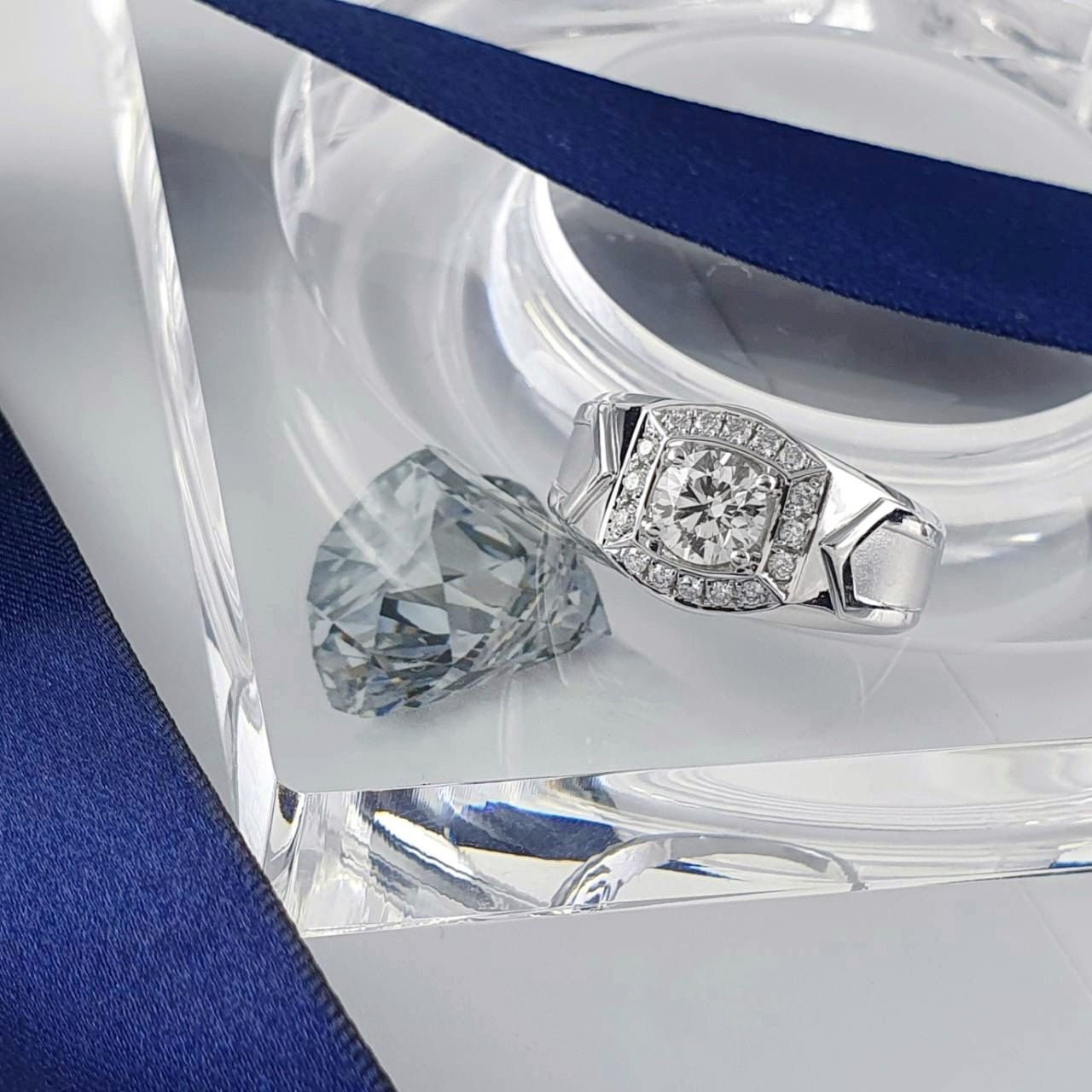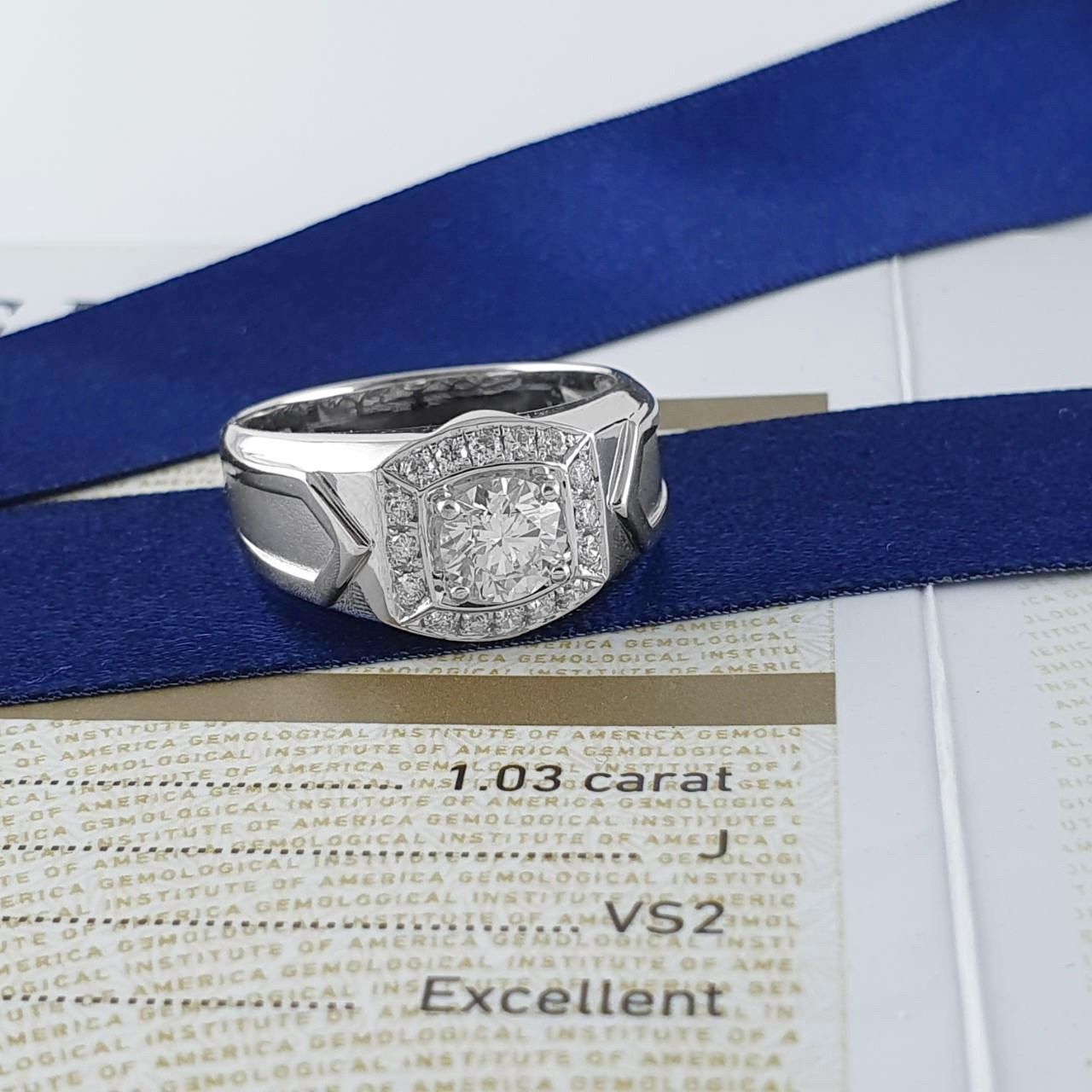 全新品GIA鑽石男戒 鑽框包鑽 主鑽1.03克拉 J色VS2 3EX完美車工 8心8箭 750K金戒台 配鑽約0.32ct 國際圍19號 面寬1.2cm 重2.88錢 GIA證書 精美盒裝