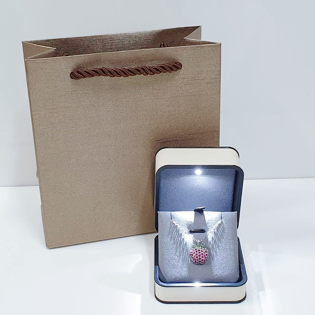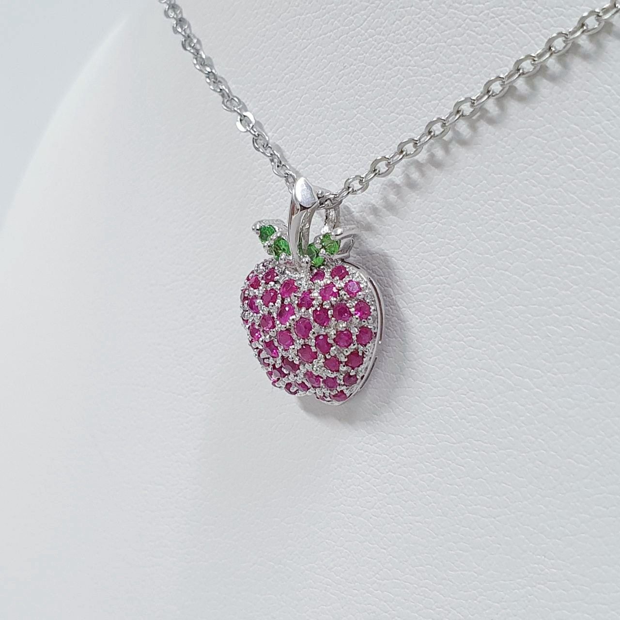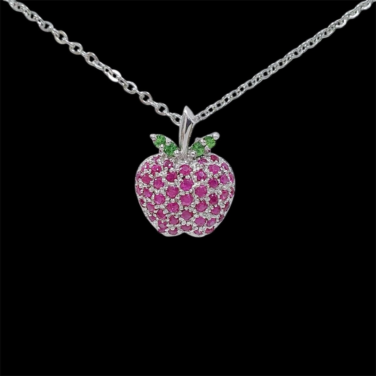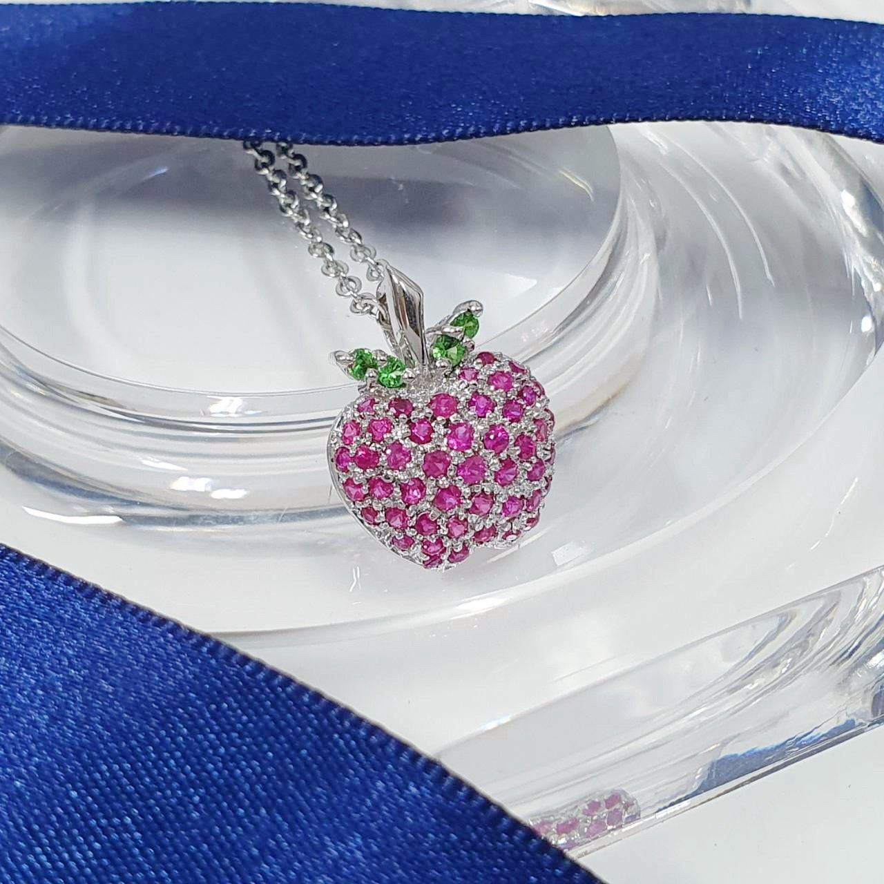 全新品 天然鑽石項鍊 紅寶 蘋果造型 白K金墜台 墜1.8x1.4cm 墜重0.6錢 附鋼鍊 精美盒裝 店保卡