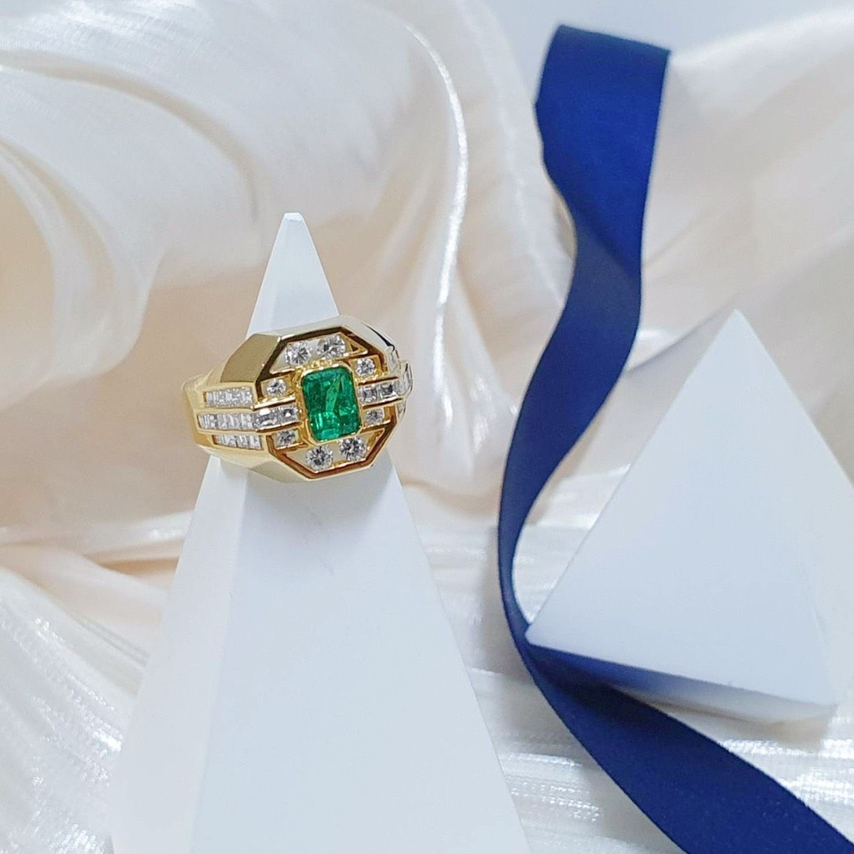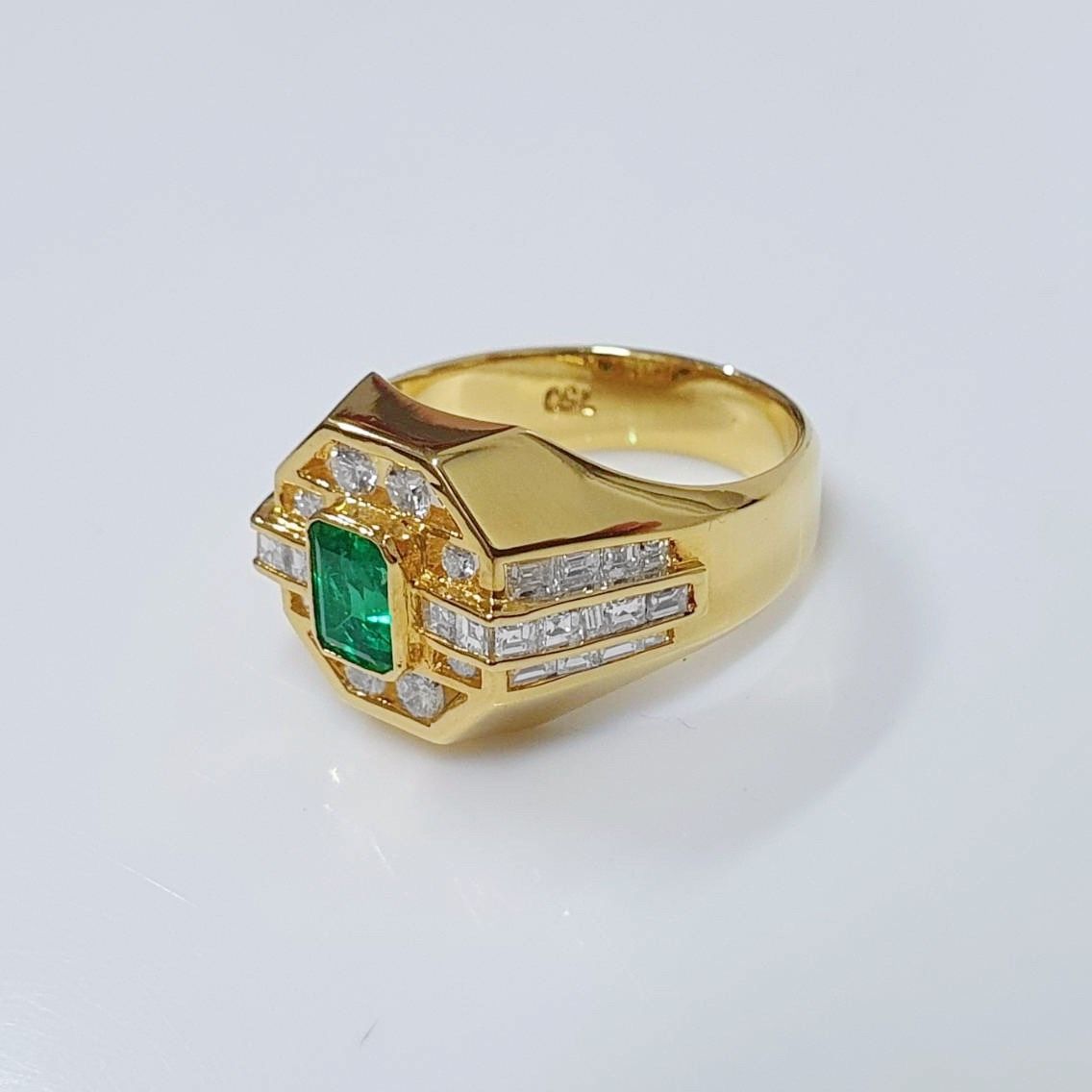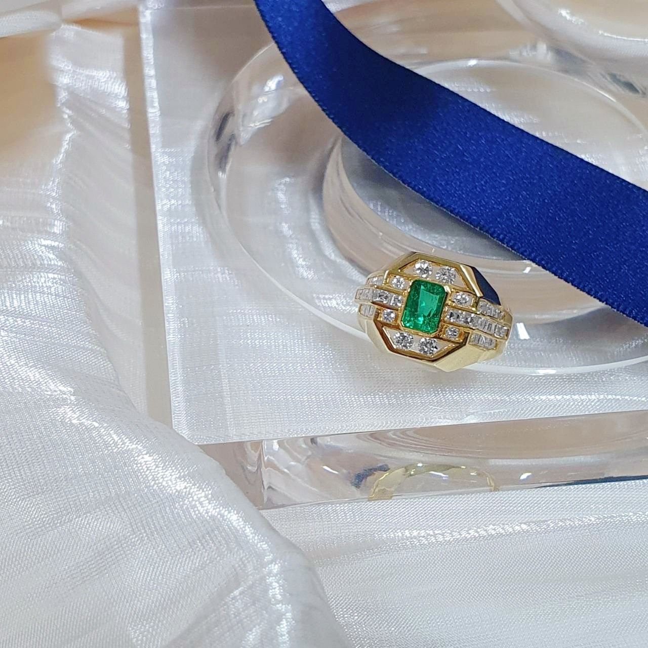 全新品 天然祖母綠戒指 正綠飽滿 主石0.65克拉 18K金戒台 配鑽約1.1ct 國際圍12.5號 面寬1.3cm 總重2.17錢 精美盒裝 店保卡