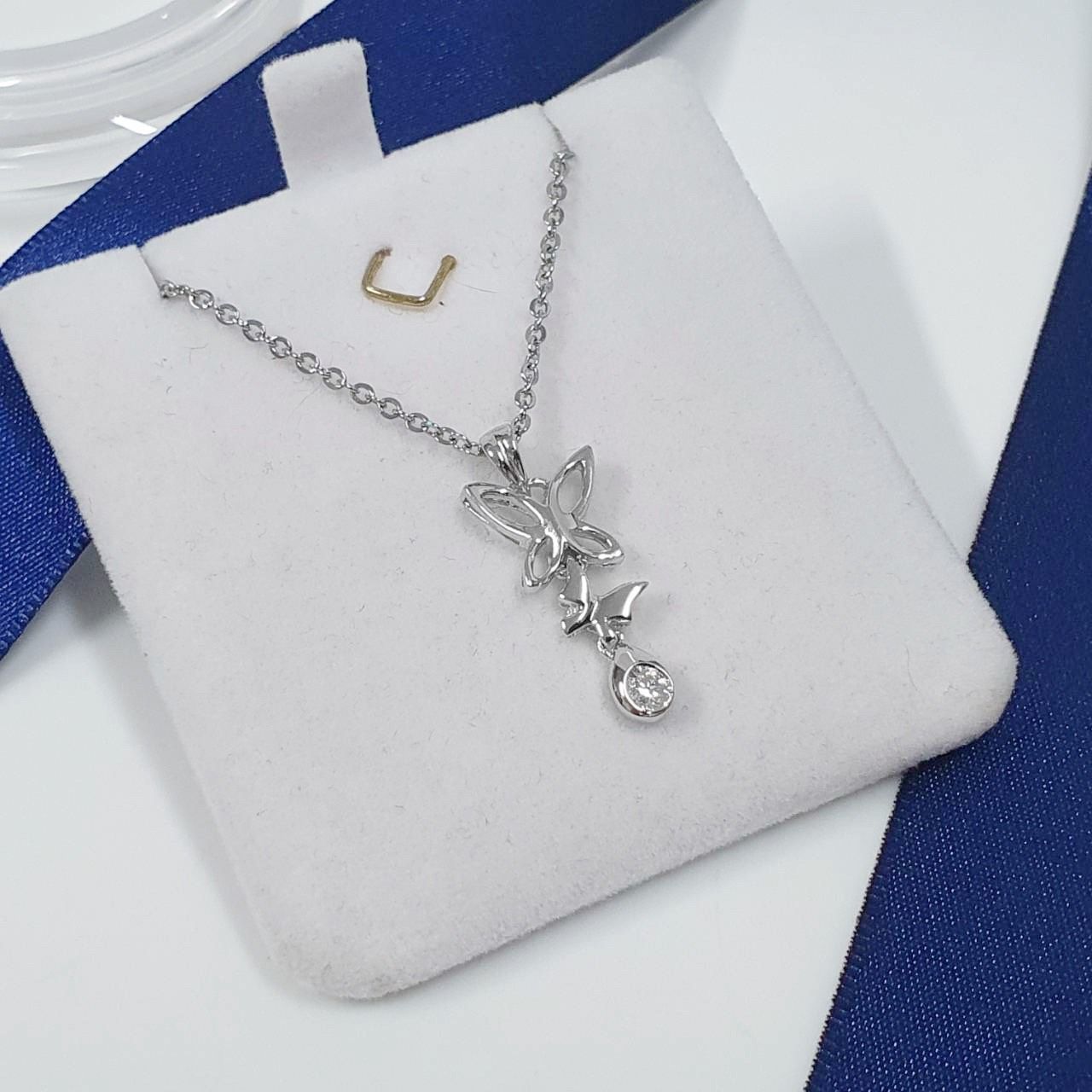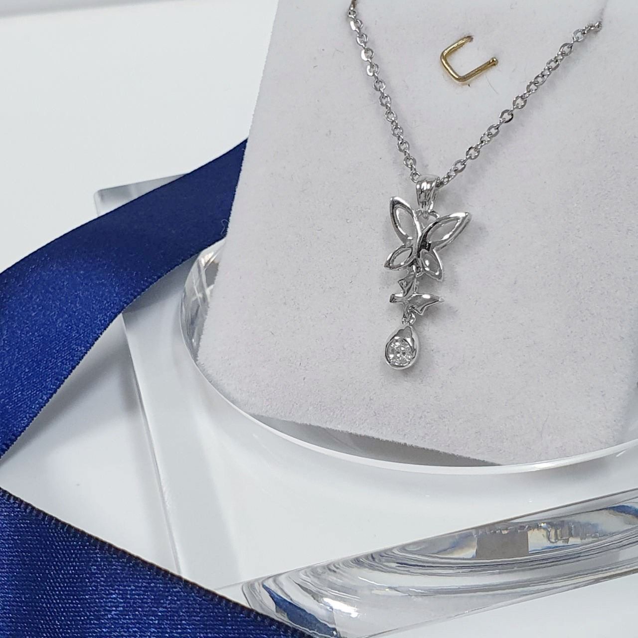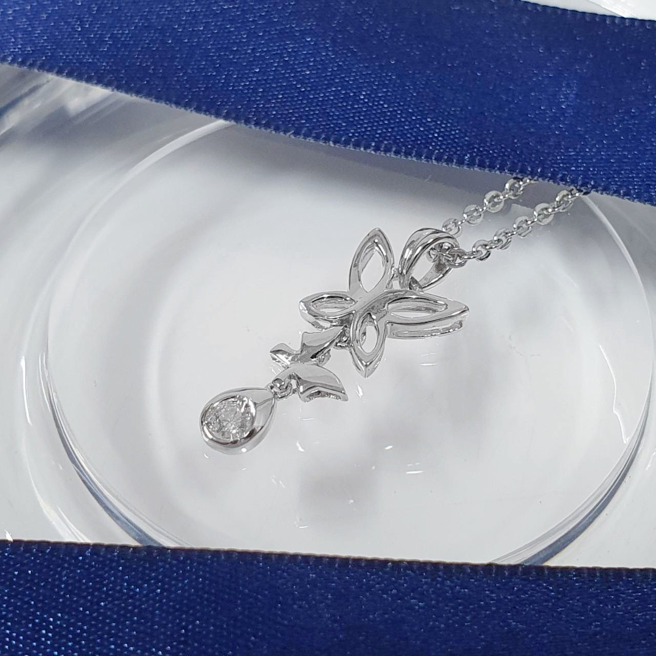 全新品 天然鑽石項鍊 花飛蝶舞 主鑽10分 14K金墜台 墜2.4x1cm 墜重0.36錢 附鋼鍊 精美盒裝 店保卡