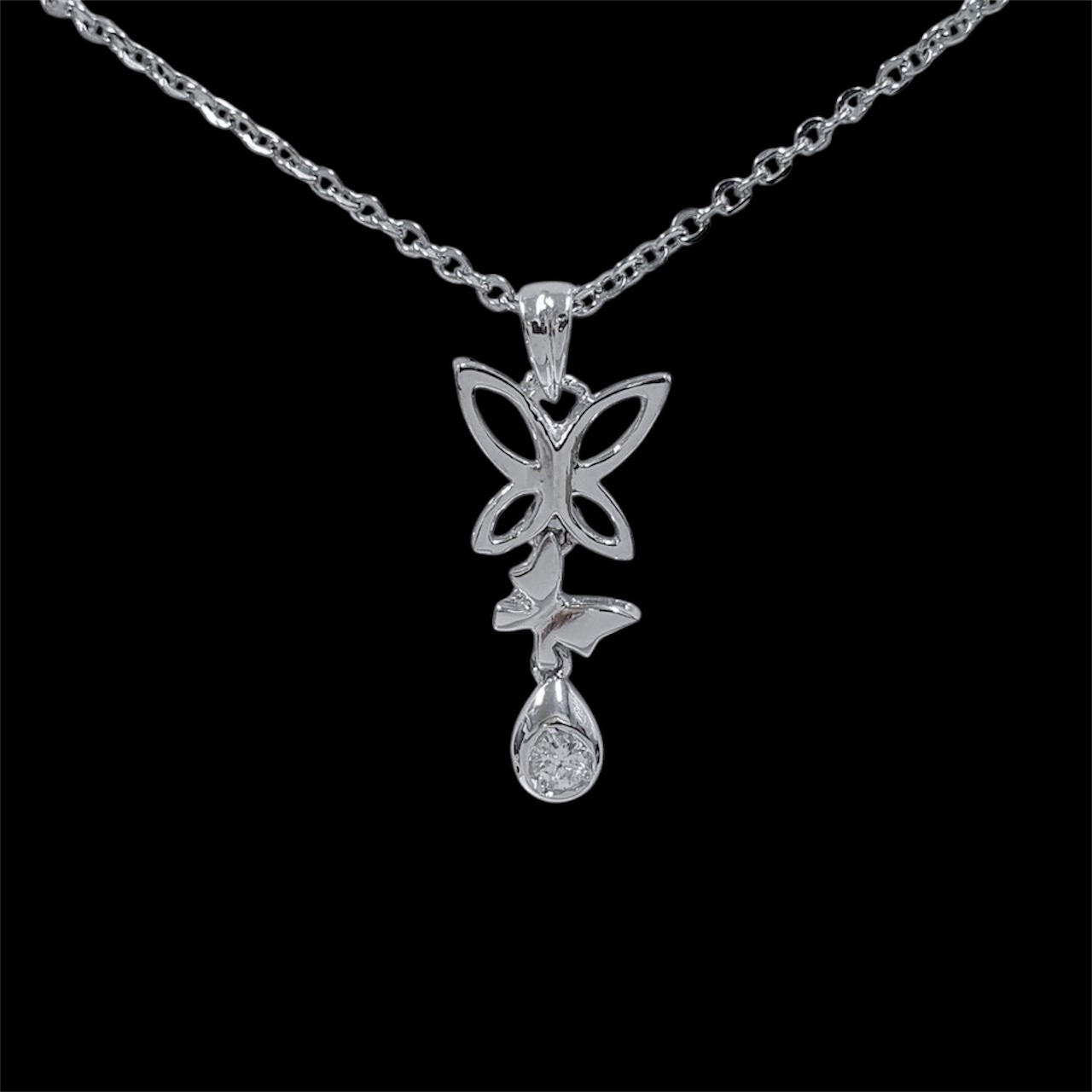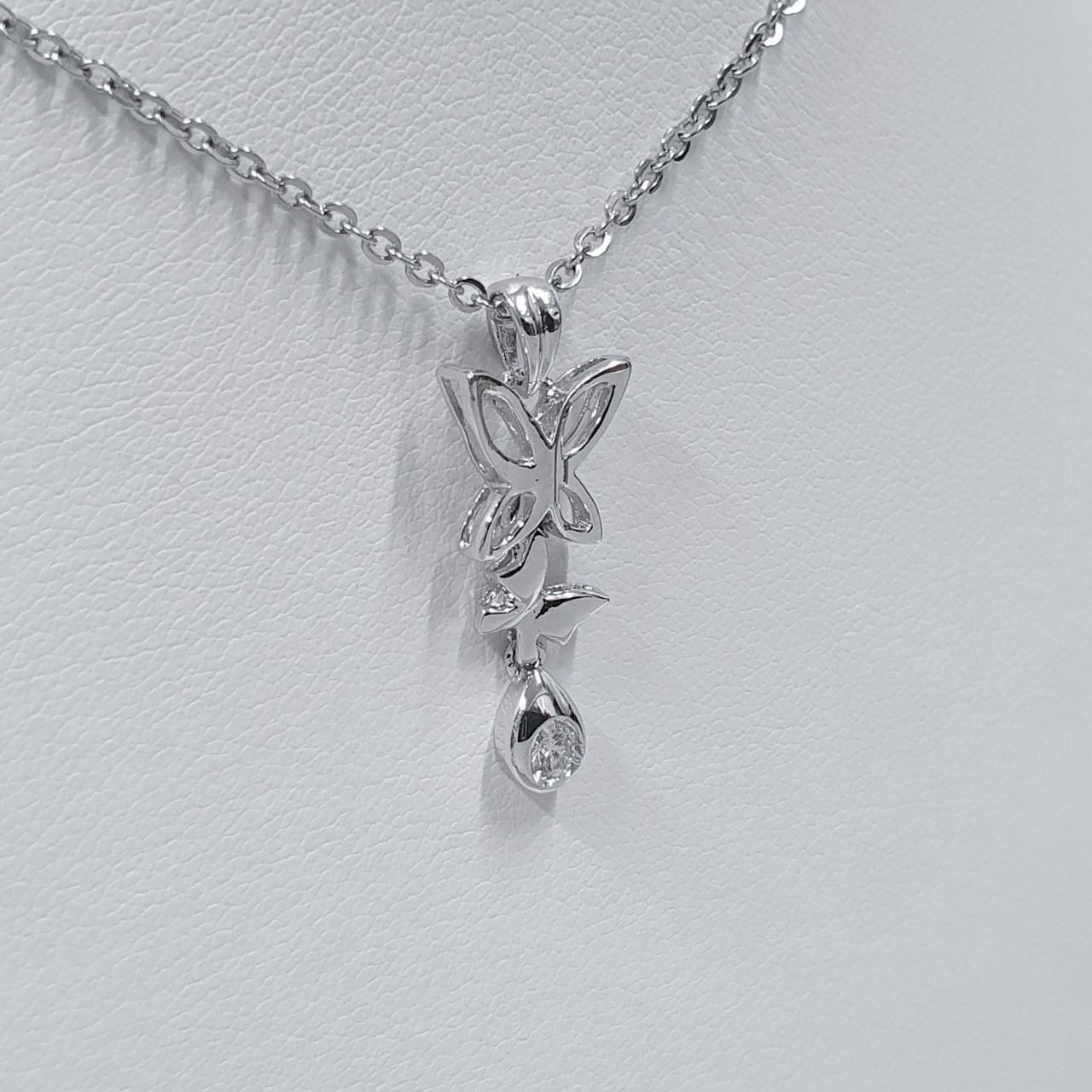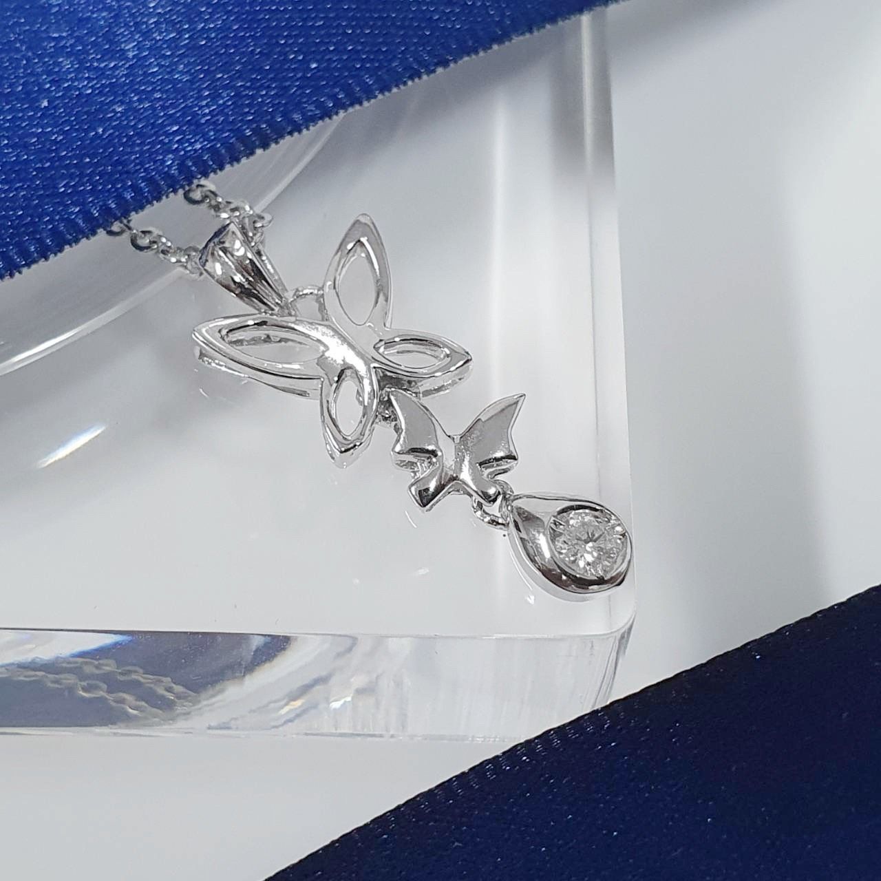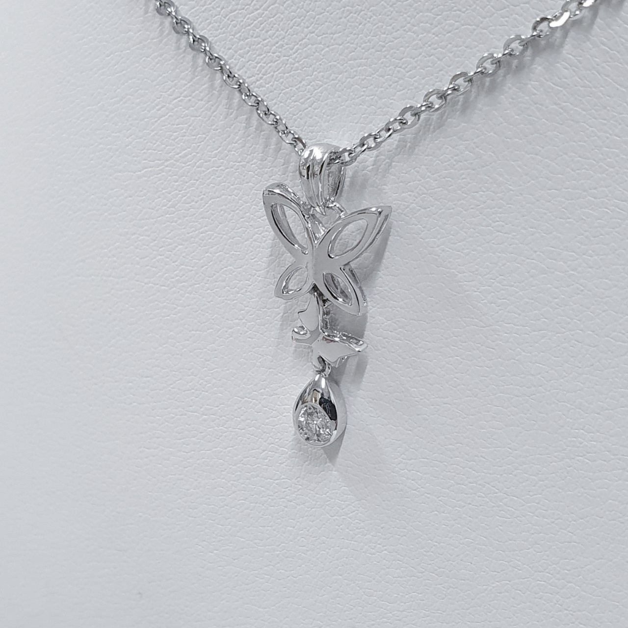 全新品 天然鑽石項鍊 花飛蝶舞 主鑽10分 14K金墜台 墜2.4x1cm 墜重0.36錢 附鋼鍊 精美盒裝 店保卡
