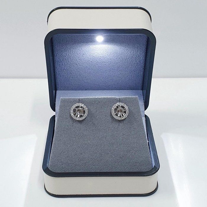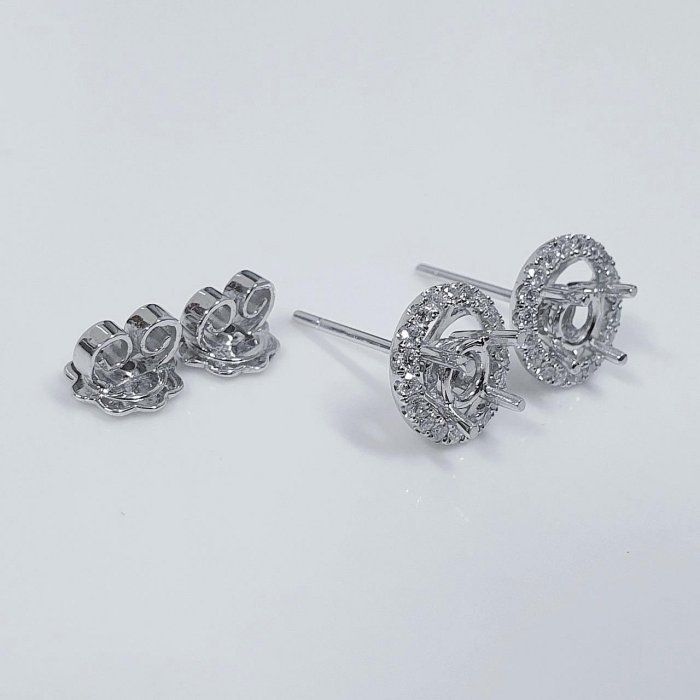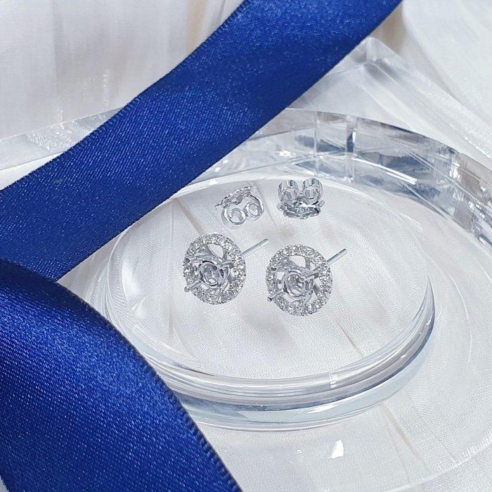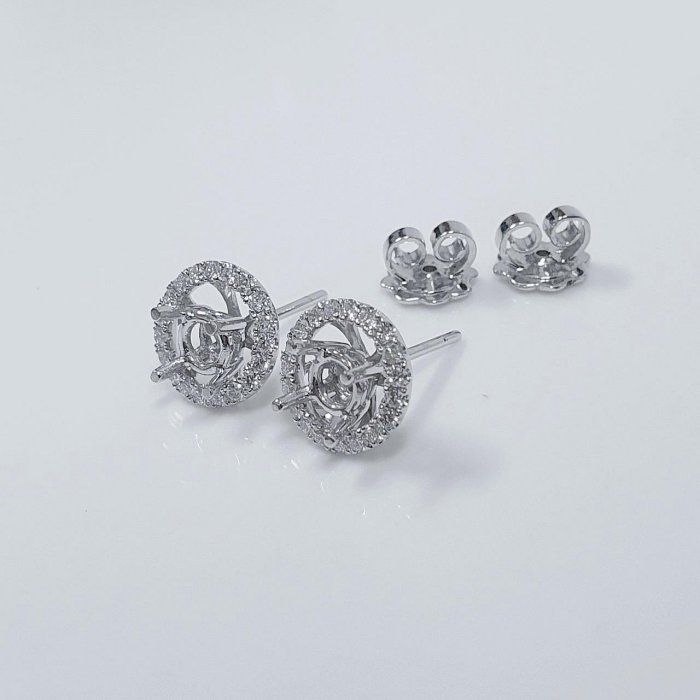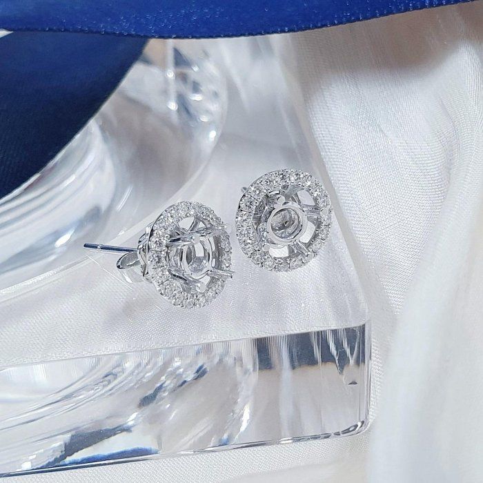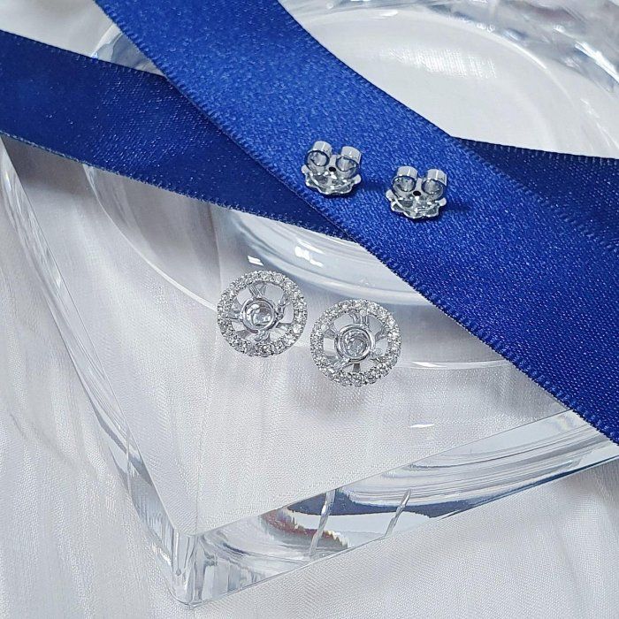 天然鑽石耳環空台 一對 適用40~60分 四爪基本款 可拆式鑽圈 18K金材質 配鑽約0.40ct 面寬1cm 重0.95錢 精美盒裝 店保卡
