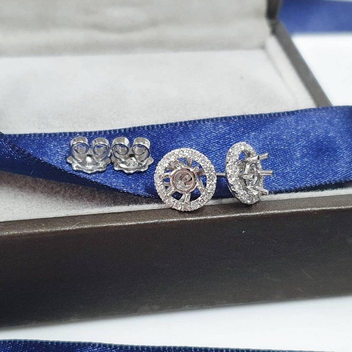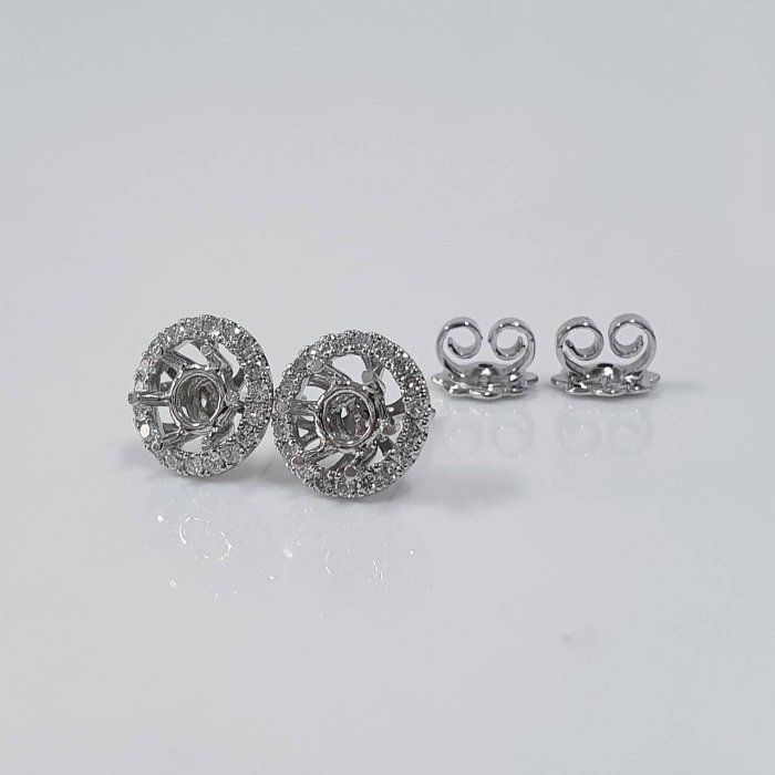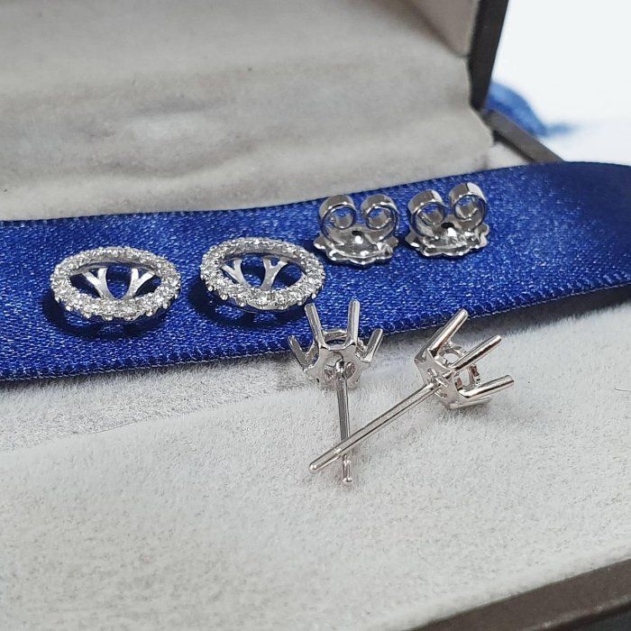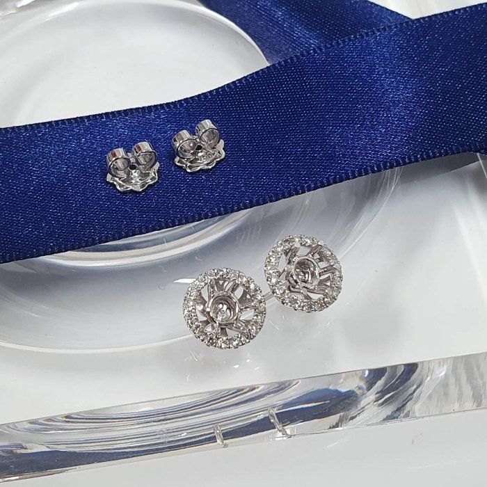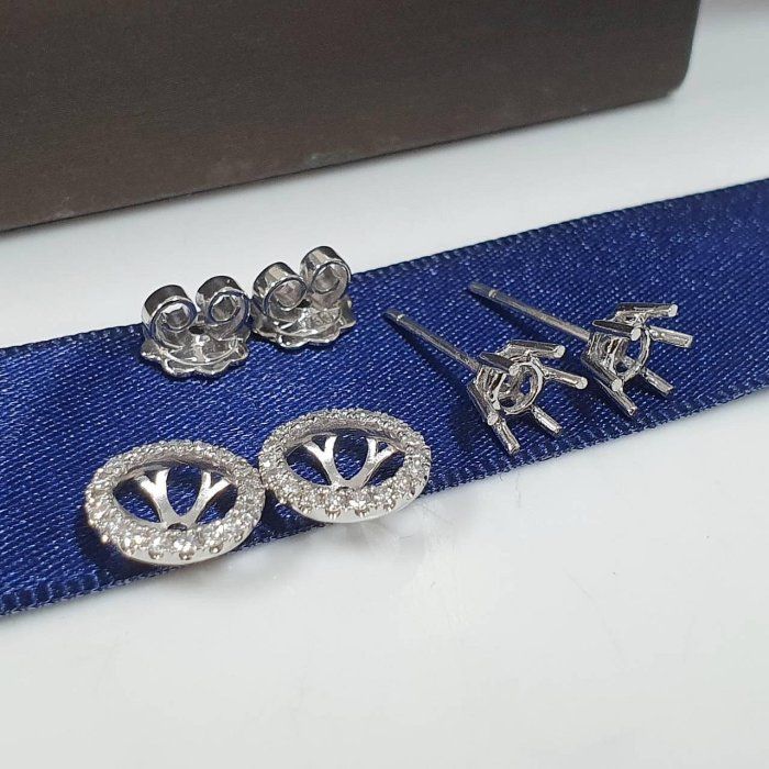 天然鑽石耳環空台 一對 適用40~60分 六爪放大款 可拆式鑽圈 18K金材質 配鑽約0.40ct 面寬1cm 重0.95錢 精美盒裝