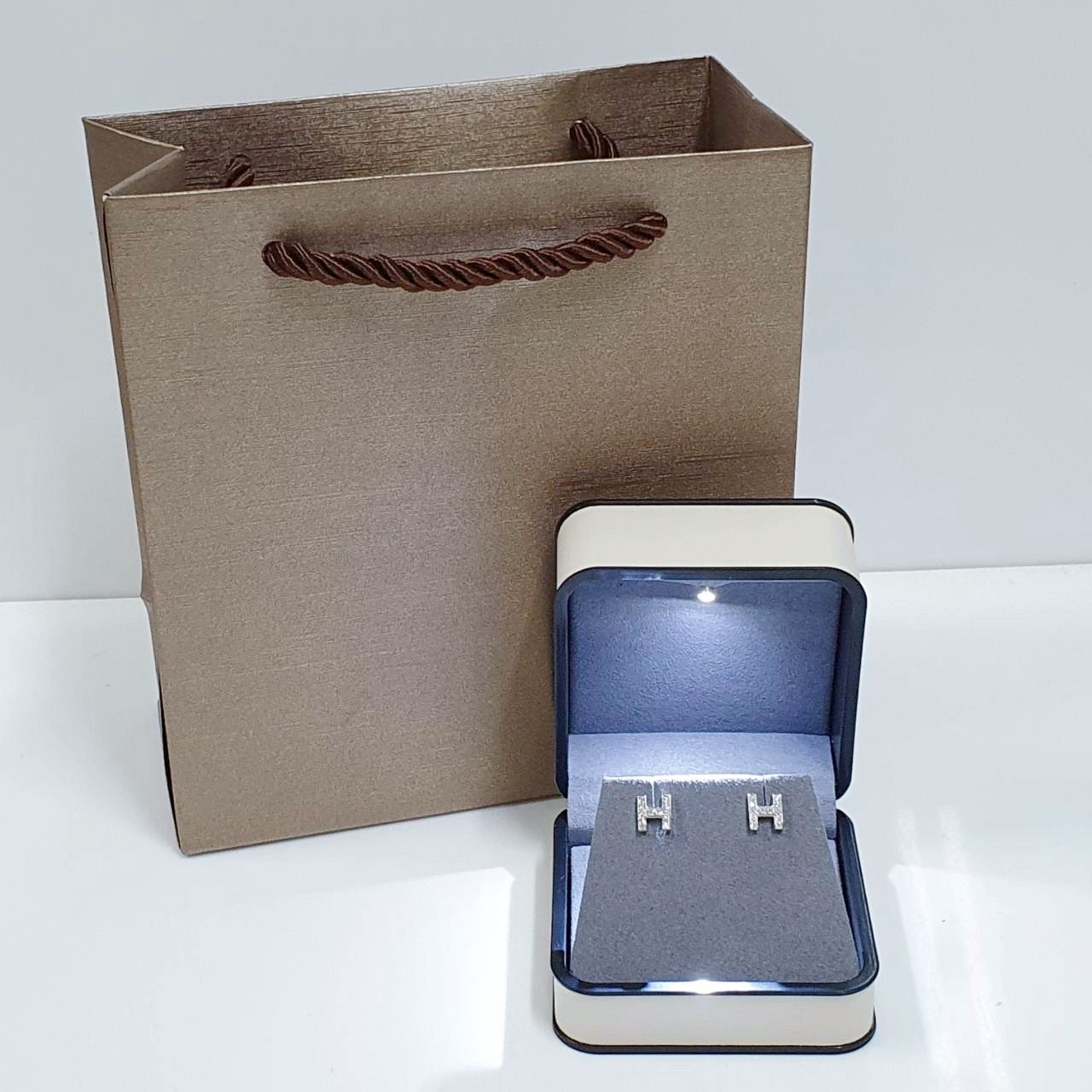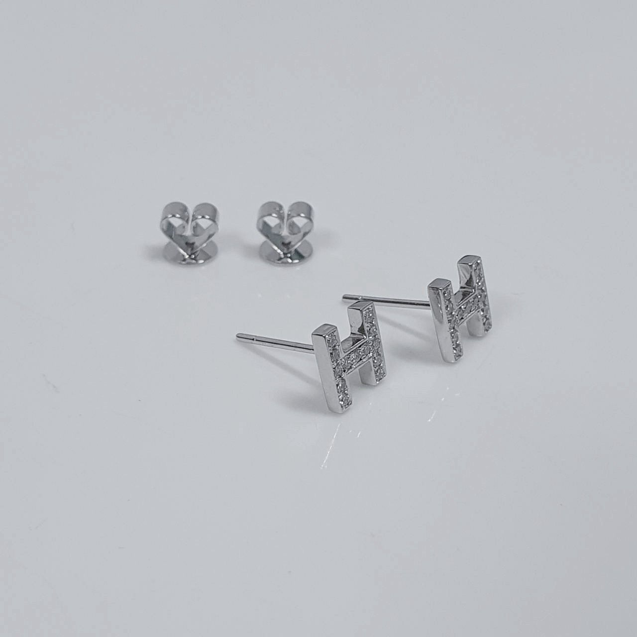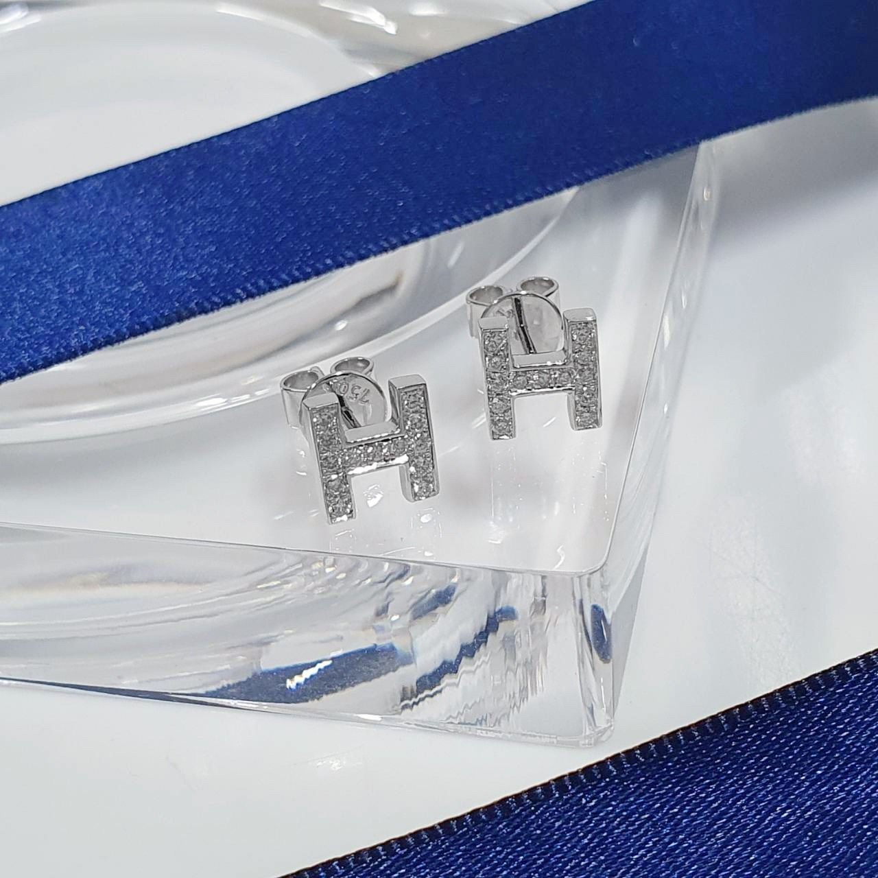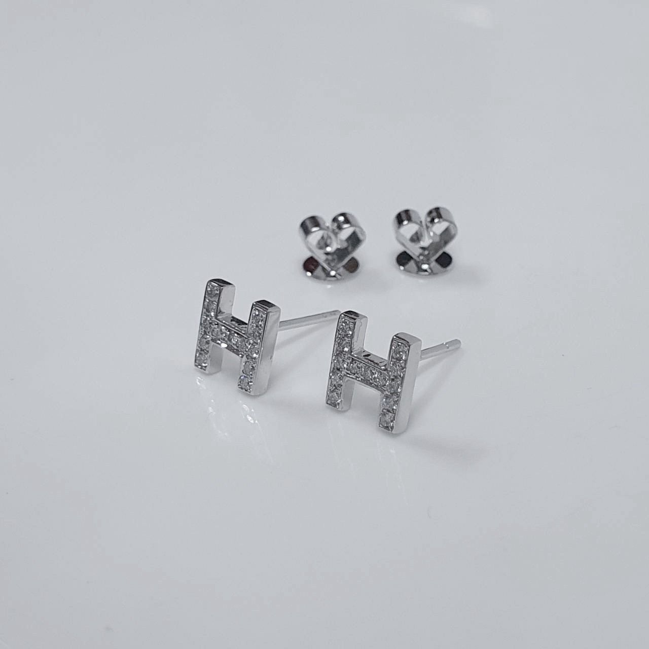 全新品鑽石耳環 H造型 小鑽約0.18克拉 耳環一對 18K金台 寬0.8x0.7cm 總重0.66錢 精美盒裝