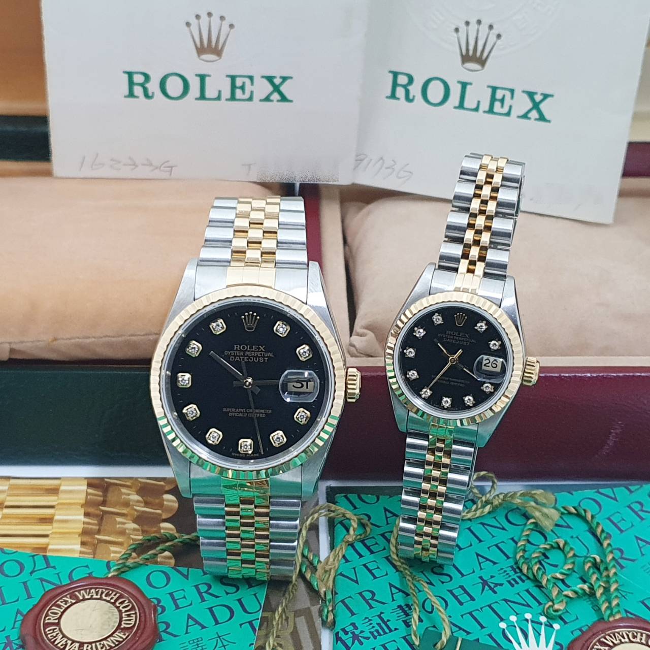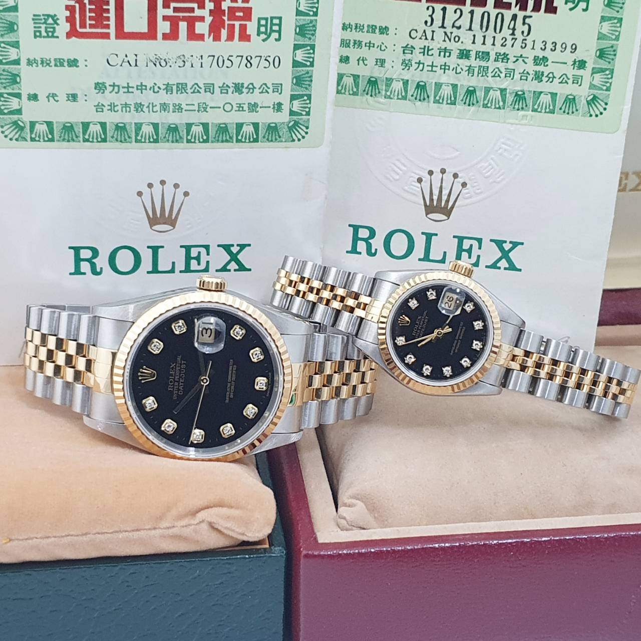 ROLEX 勞力士 16233/69173 - Datejust 蠔式日誌 原廠黑十鑽面盤 台灣AD T字頭/S字頭 勞力士對錶 男女對錶 錶徑36/26mm 自動上鍊 18K金及不鏽鋼 防水100米 原廠全配件