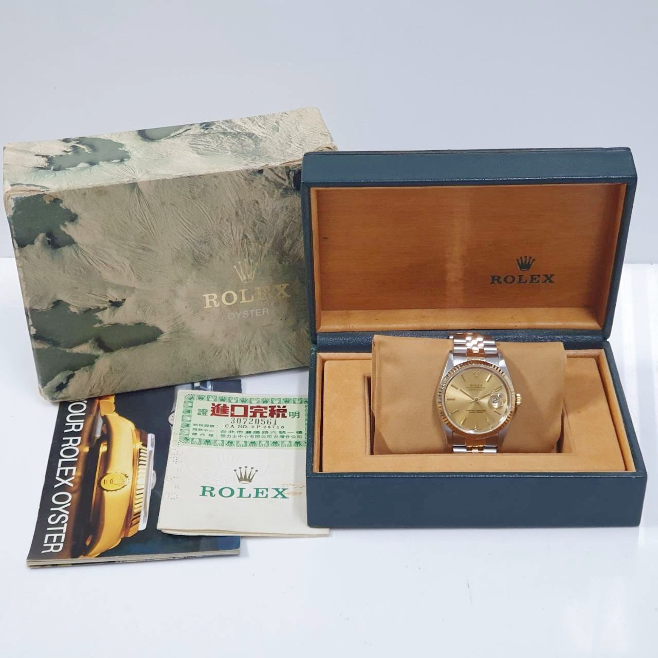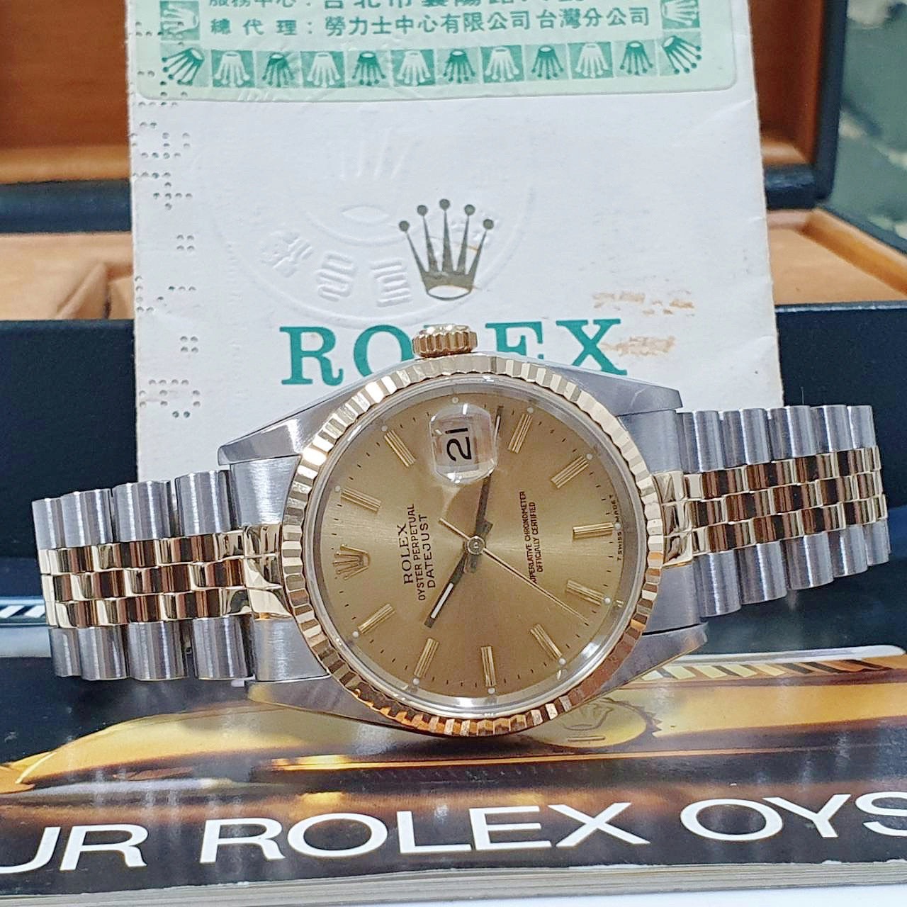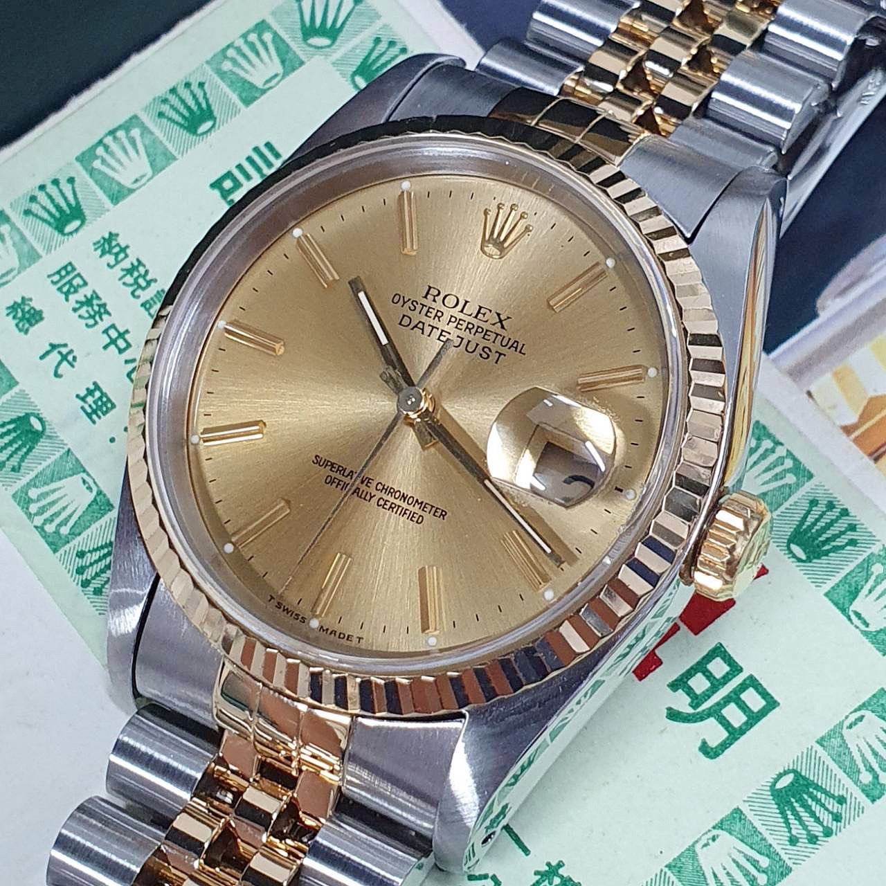 ROLEX勞力士 16233 Datejust 蠔式日誌 金面T柱 台灣AD 錶徑36mm 自動上鍊 18K金及不鏽鋼 防水100米 X字頭 原廠盒單齊全 保養完成