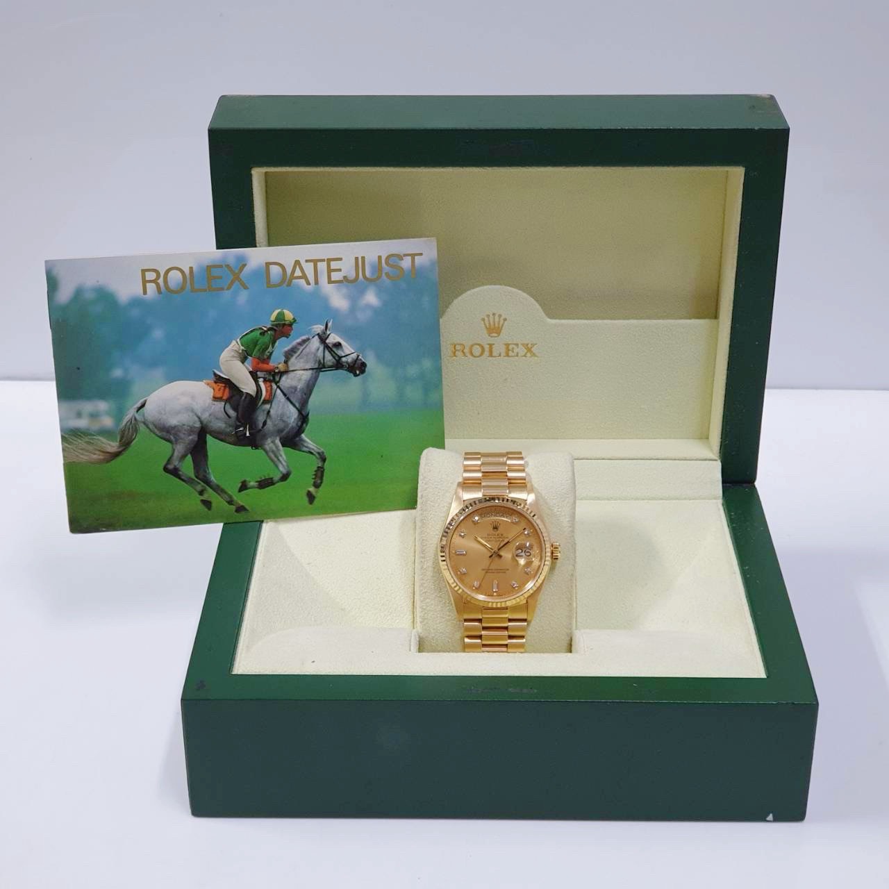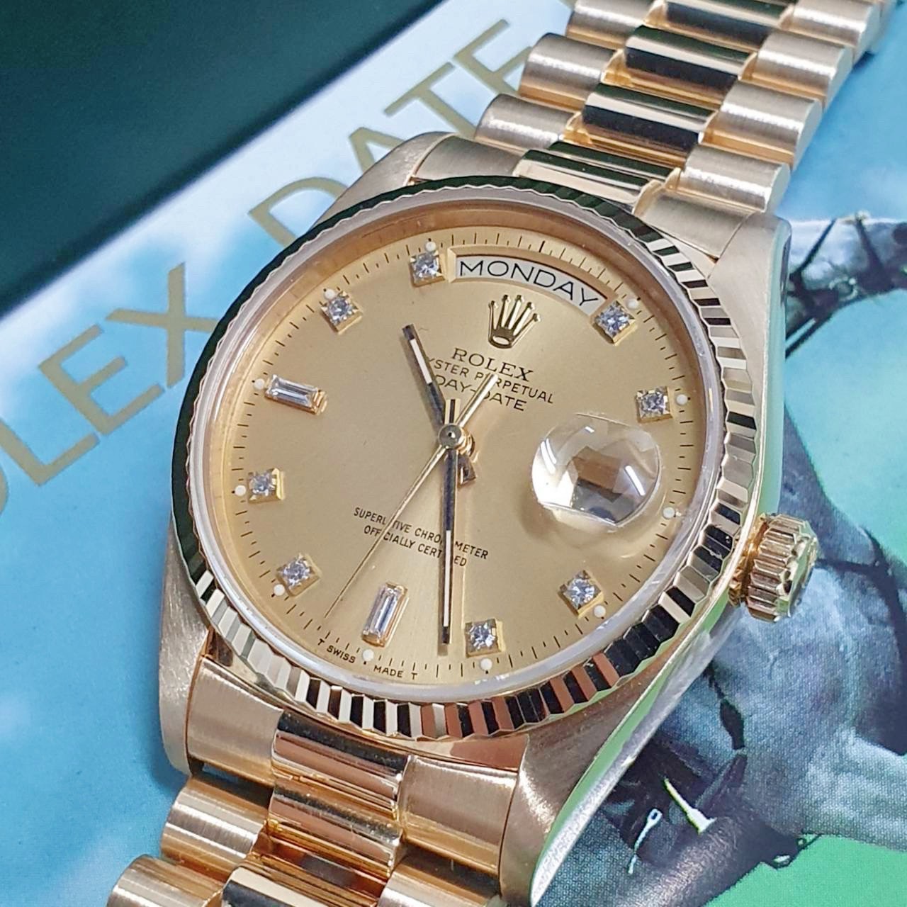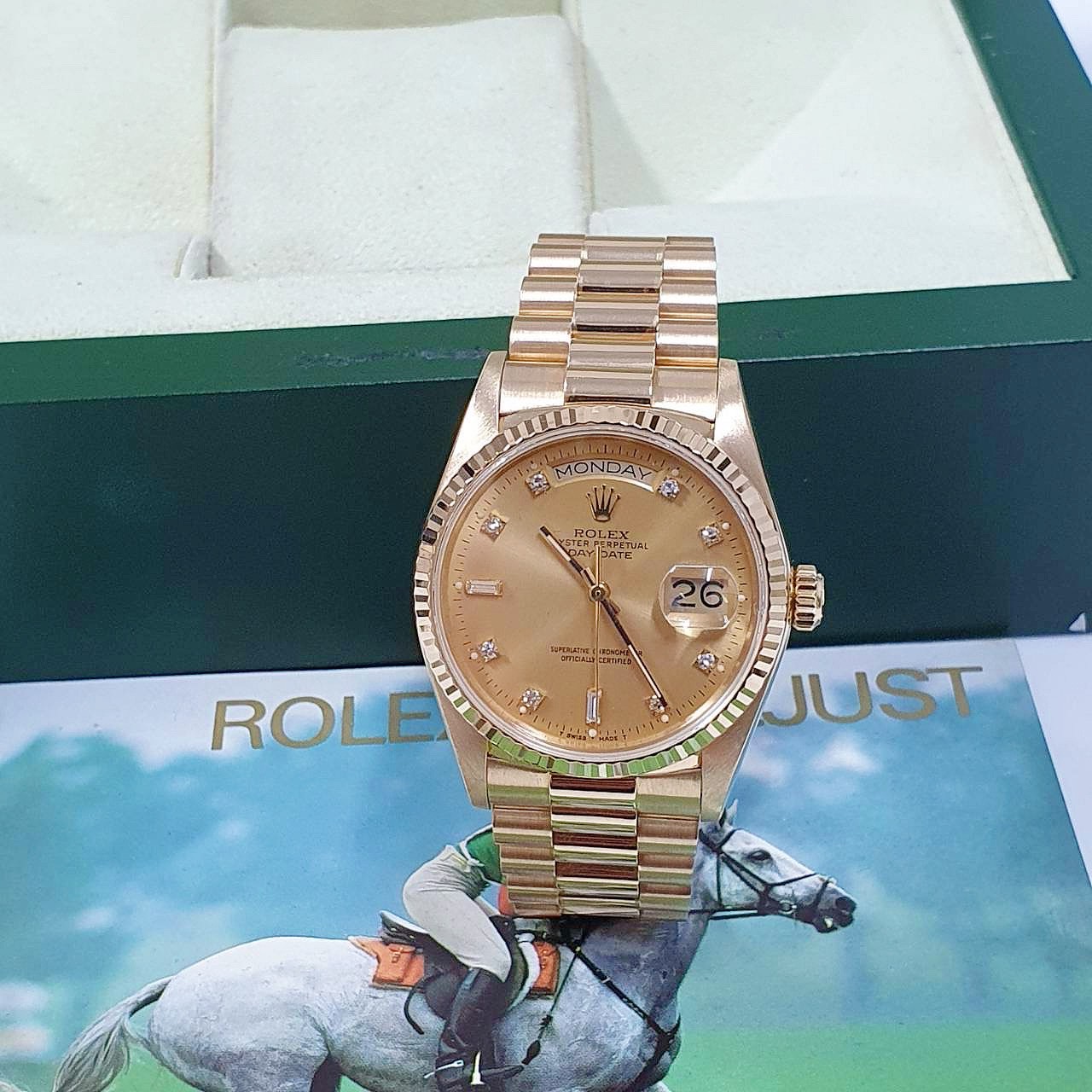 ROLEX 勞力士 18038 Day-date 蠔式18K金 金十鑽面盤 6.9T鑽 錶徑36mm 自動上鍊 18K金材質 防水100米 900萬字頭 缺證書 原廠盒裝 店保卡 保養完成