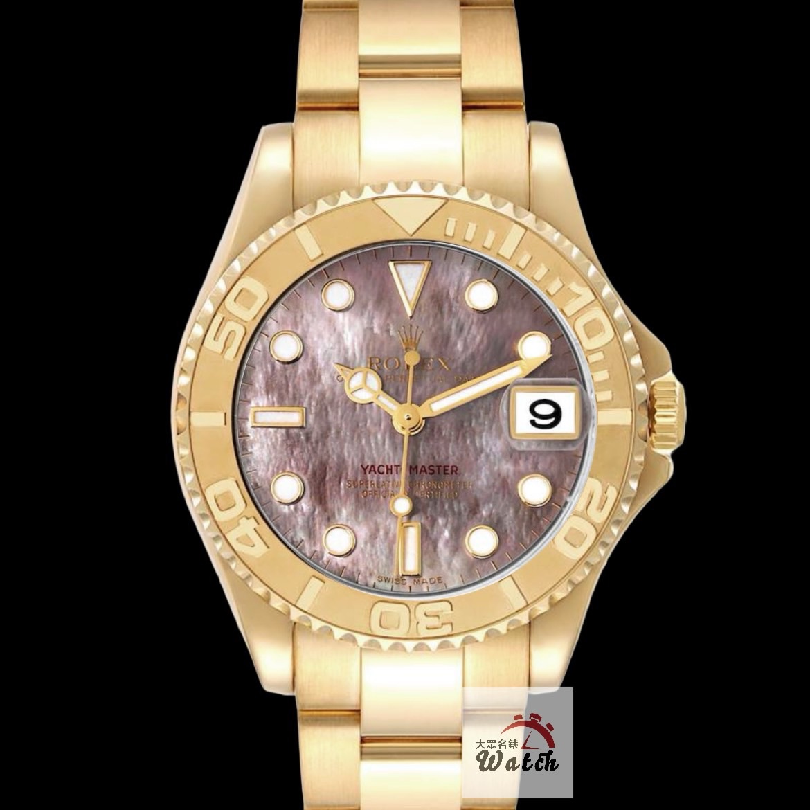 ROLEX 勞力士 168628 Yacht-Master 2009/10 市場非常稀少 中型18K金 遊艇名仕 黑色貝殼面盤 錶徑35mm 自動上鍊 18K金材質 防水100米 原廠盒單齊全 保養完成