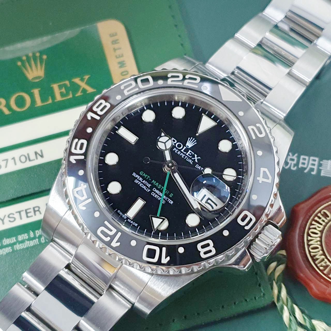 ROLEX勞力士 116710LN GMT-Masterll 黑面綠針 2013/10 陶瓷圈 格林威治 兩地時區 錶徑40mm 自動上鍊 不鏽鋼材質 防水100米 原廠盒單齊全 保養完成