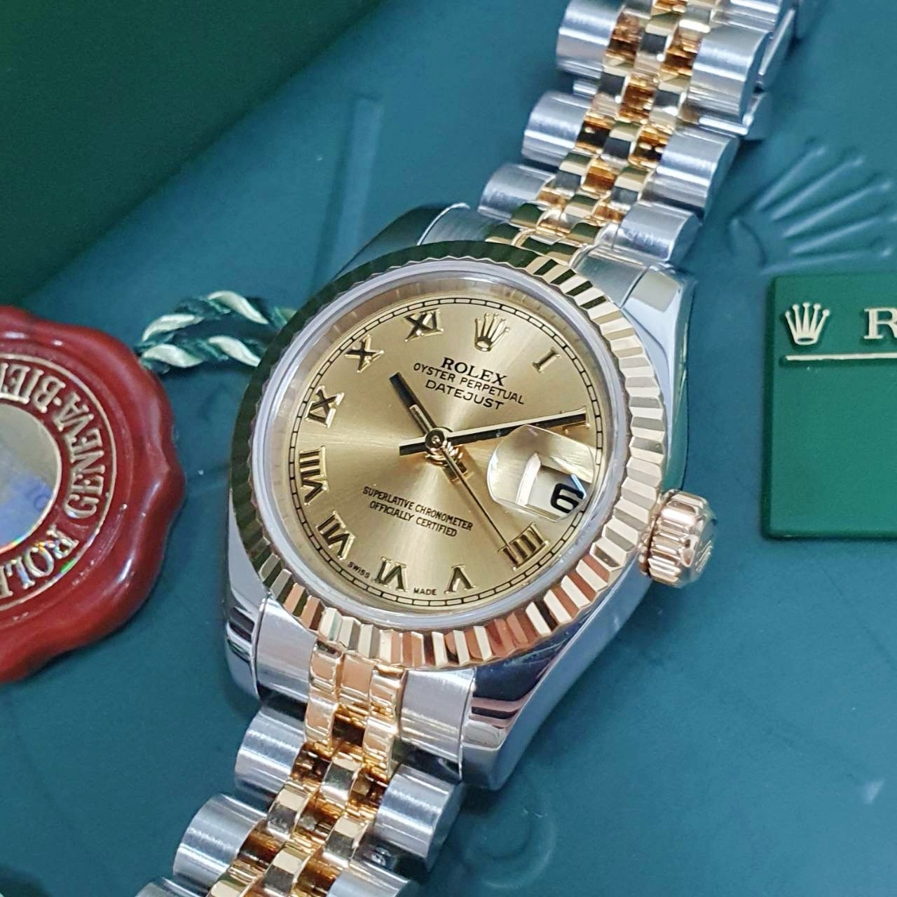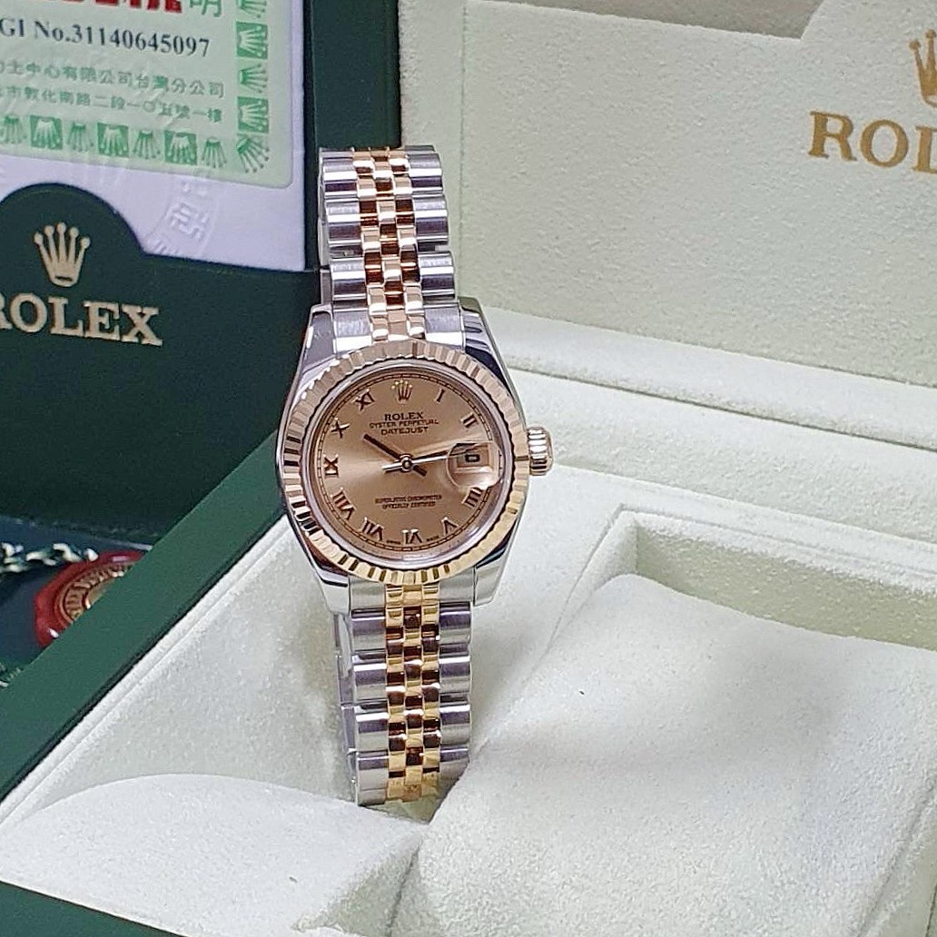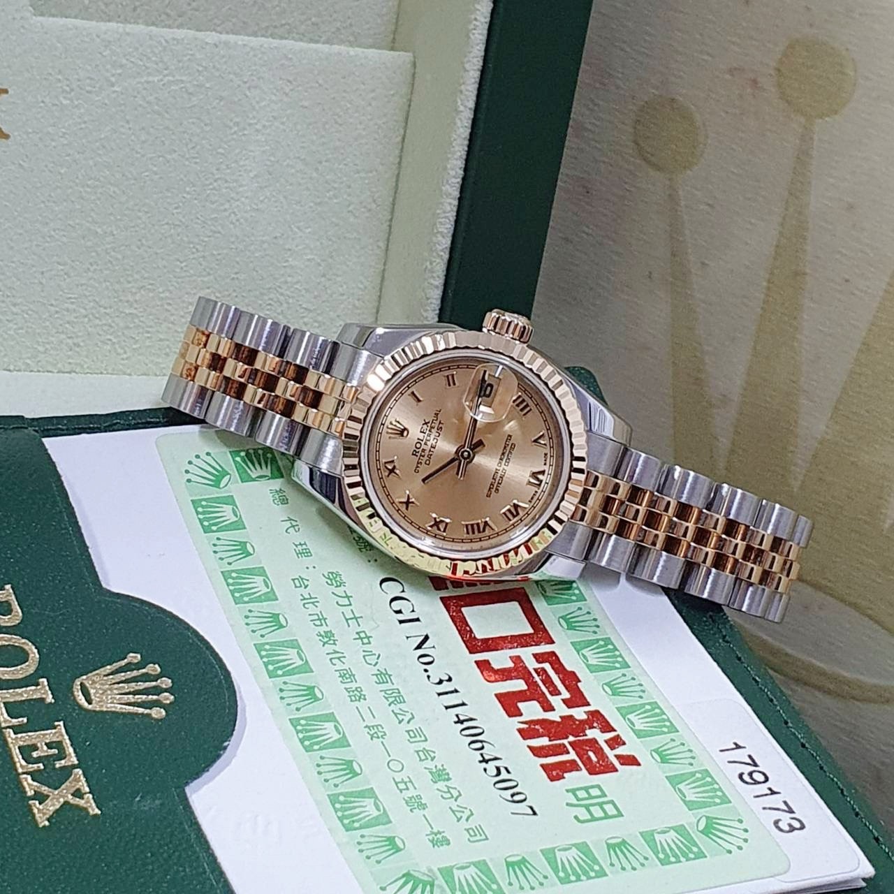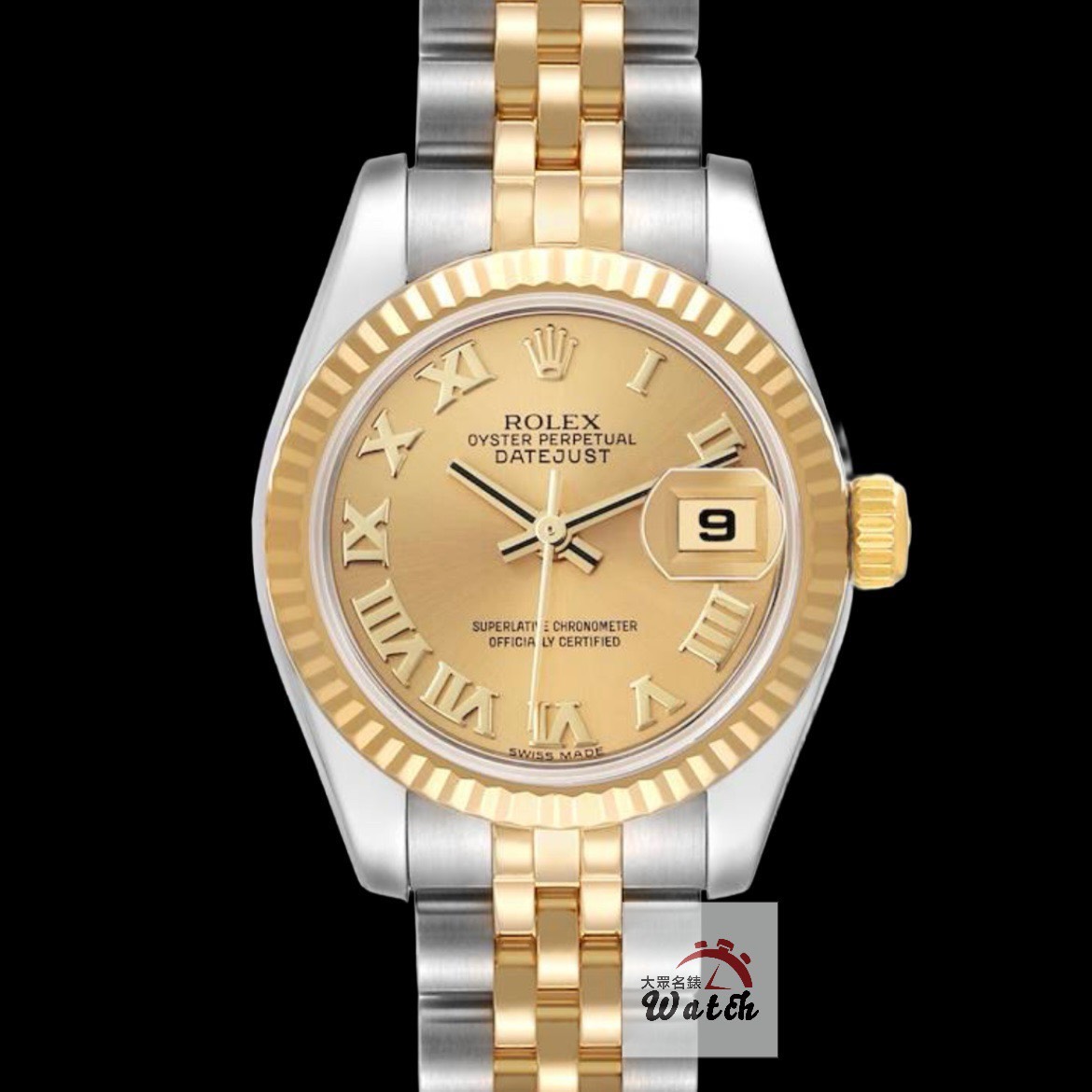 ROLEX勞力士 179173 Datejust蠔式女錶 新包台 金面羅馬時標 2007/10全配件 台灣AD 原廠底蓋貼紙 錶徑26mm 自動上鍊 18K金及不鏽鋼 防水100米 F字頭 原廠全配件 保養完成
