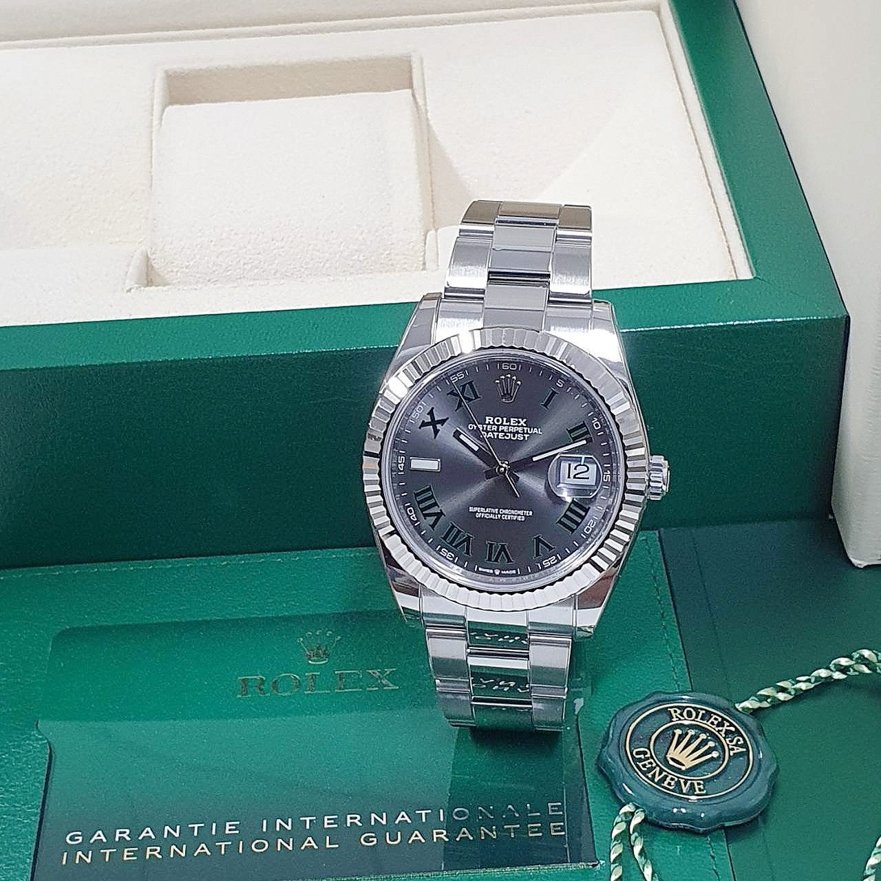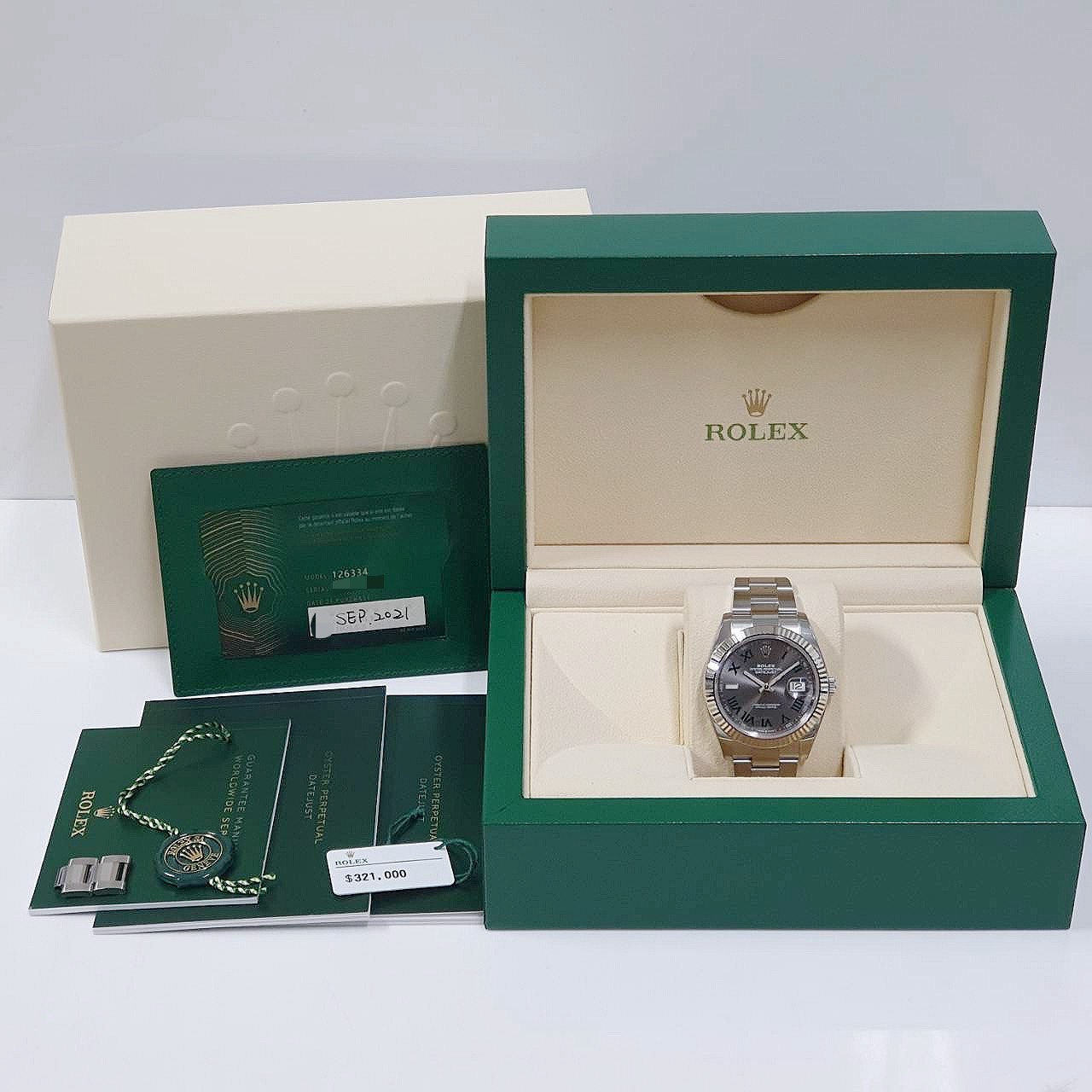 Rolex 勞力士 126334 Datejust 蠔式日誌 綠羅馬 2021/09全配件 已貼膜 三版帶 錶徑41mm 自動上鍊 18K白金及不鏽鋼材質 防水100米 原廠全配件
