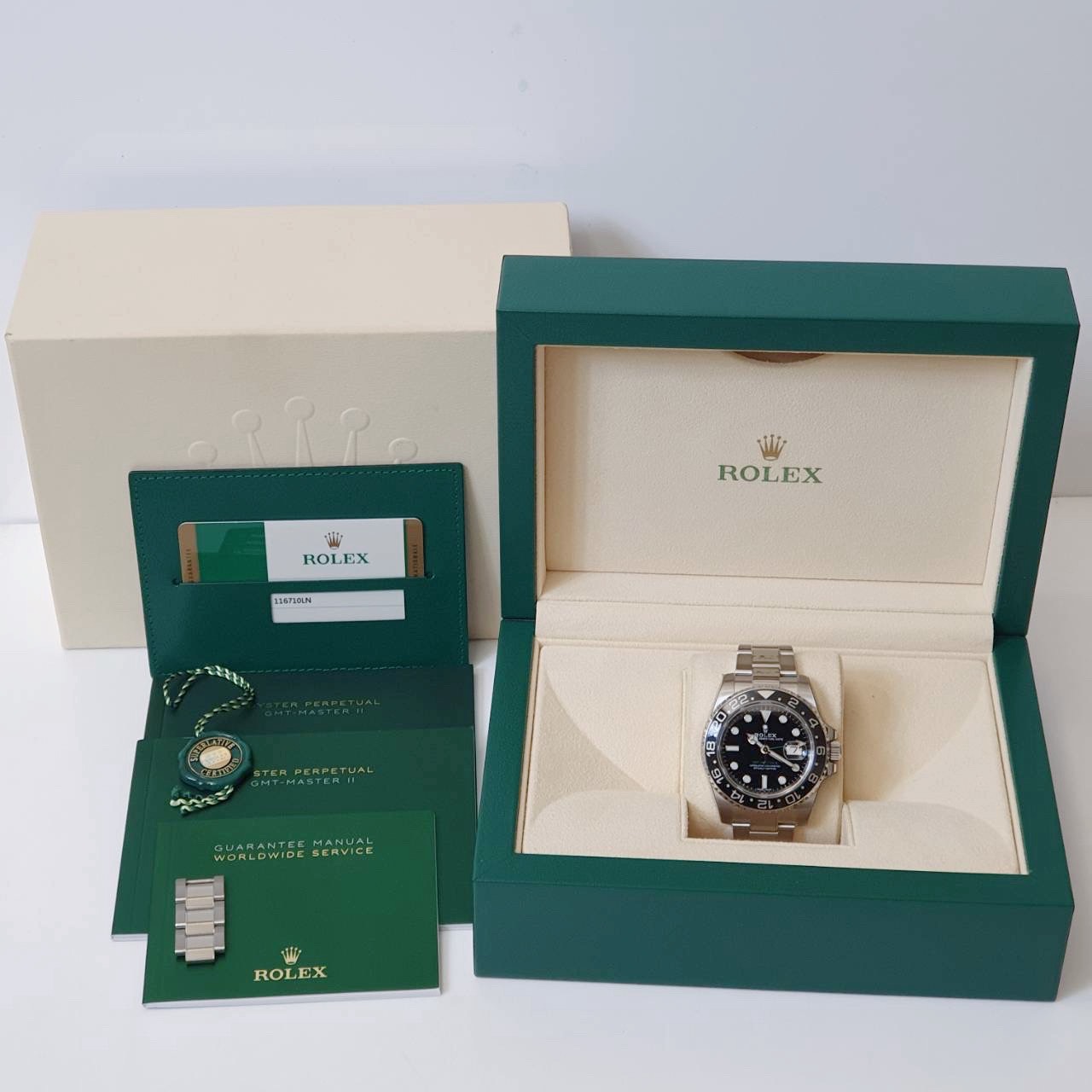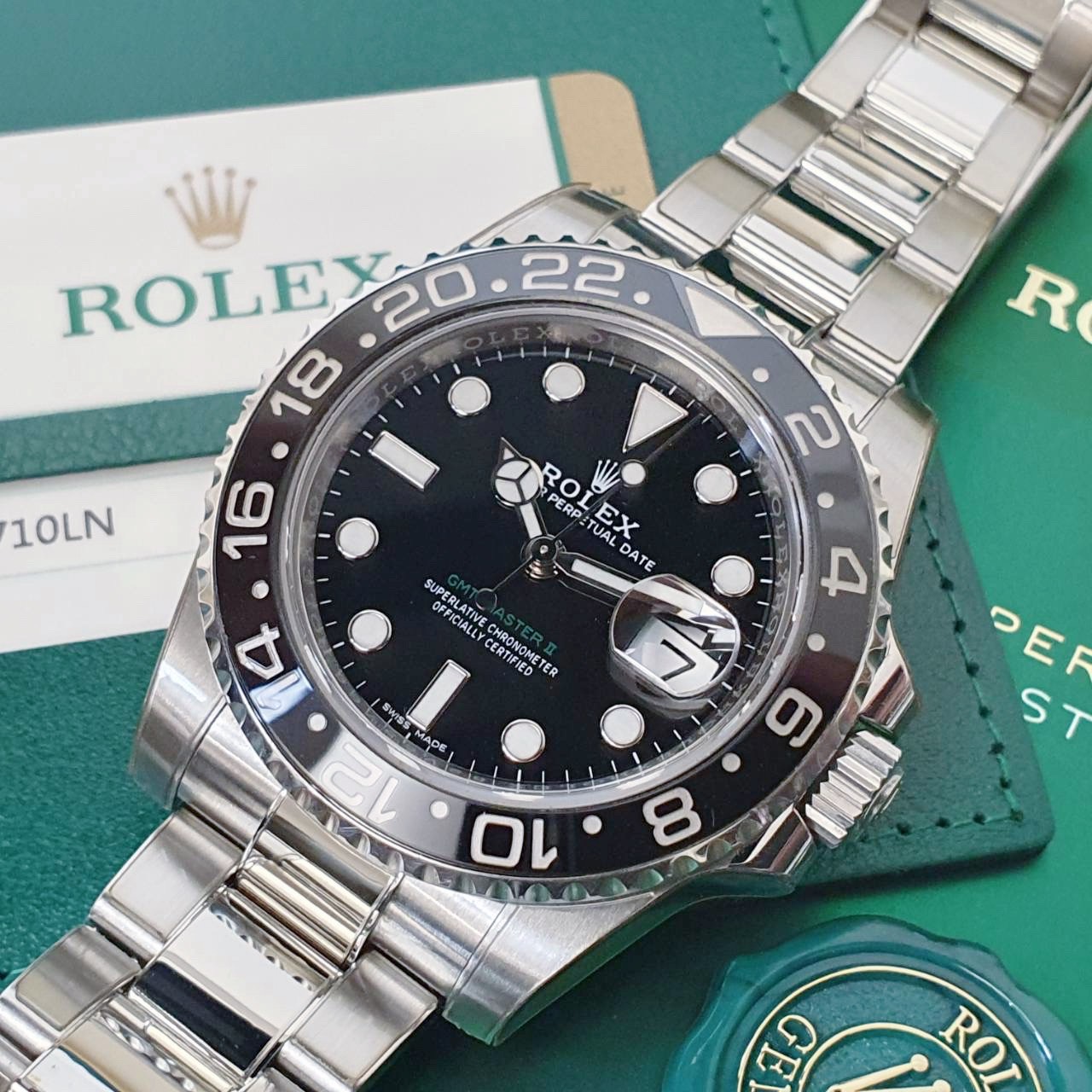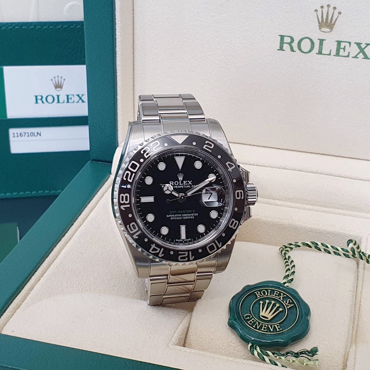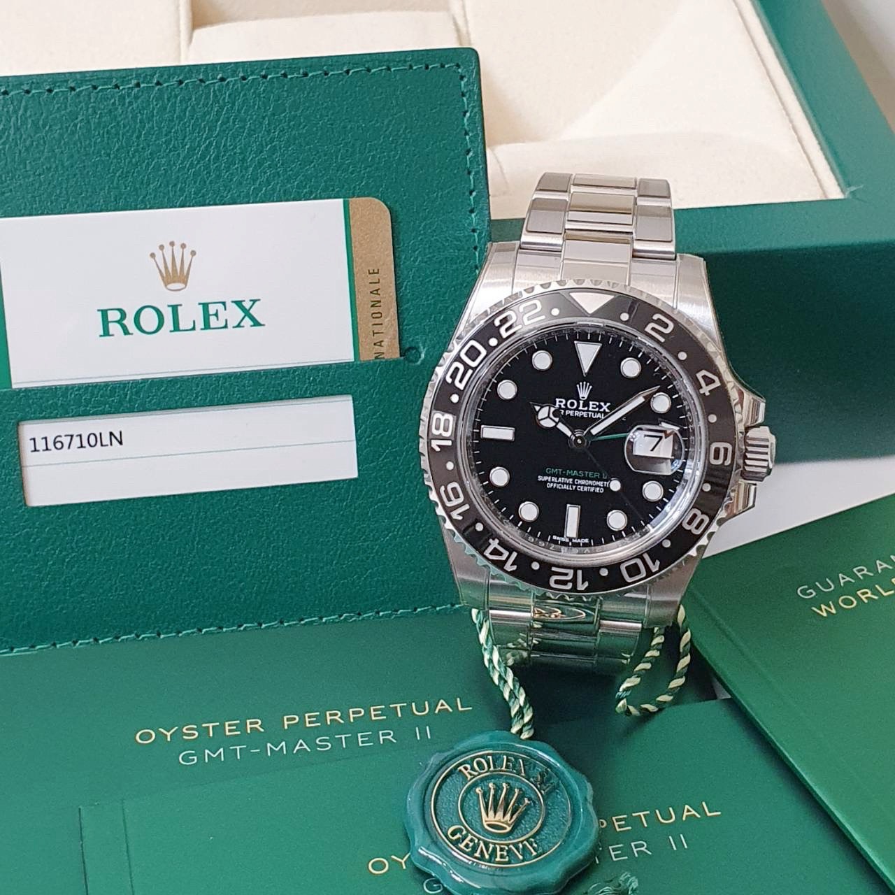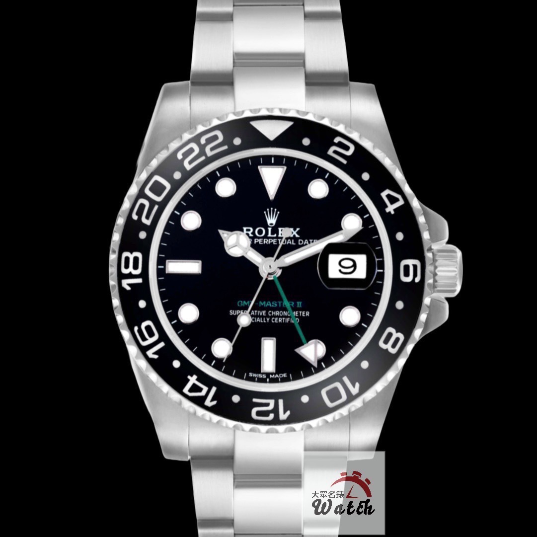 ROLEX勞力士 116710LN GMT-Masterll 黑面綠針 2019/03 部分已貼膜 陶瓷圈 格林威治 兩地時區 錶徑40mm 自動上鍊 不鏽鋼材質 防水100米 原廠盒單齊全 保養完成