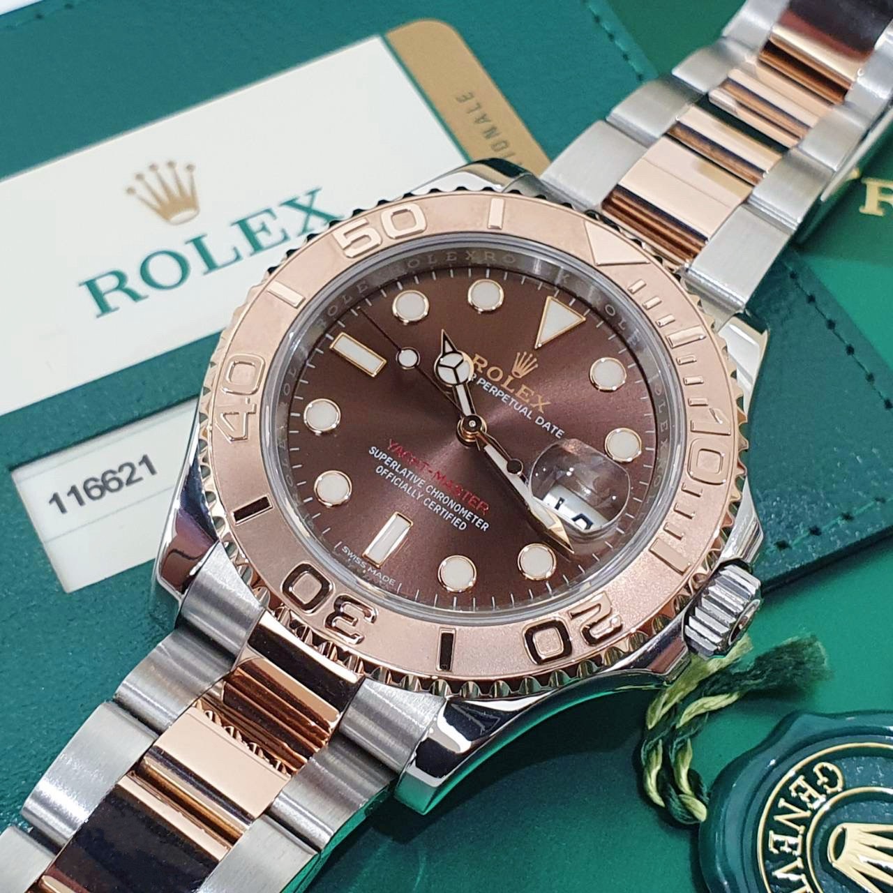 勞力士116621 Yacht-Master 18K玫瑰半金 2017/04全配件 巧克力面盤 遊艇名仕 錶徑40mm 自動上鍊 18K玫瑰金及不鏽鋼 防水100米 原廠全配件 保養完成