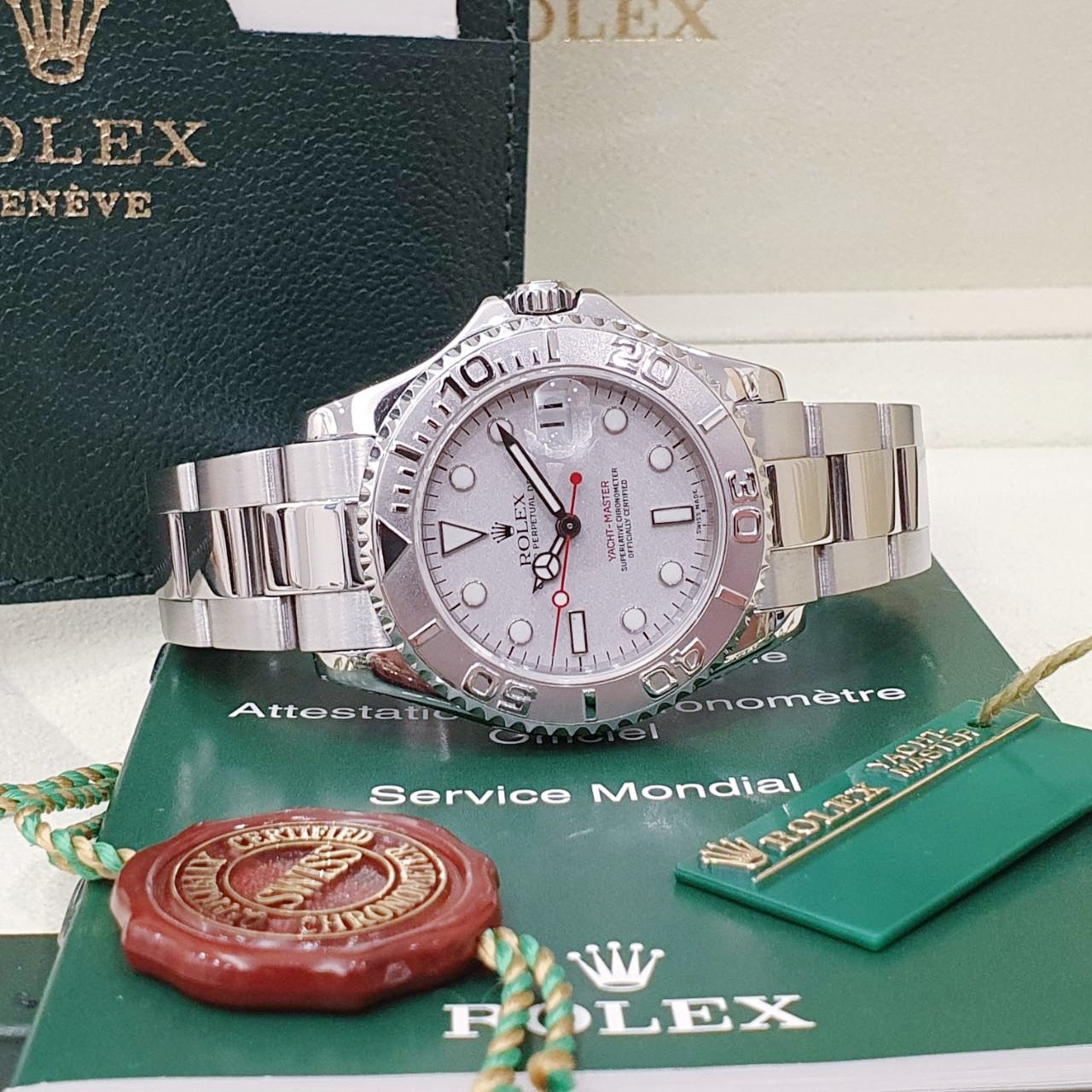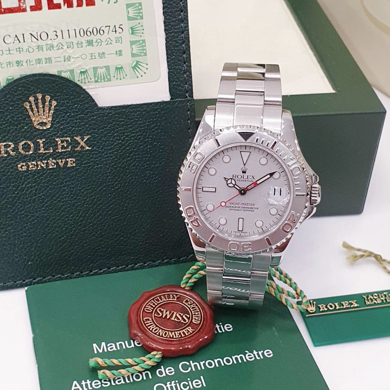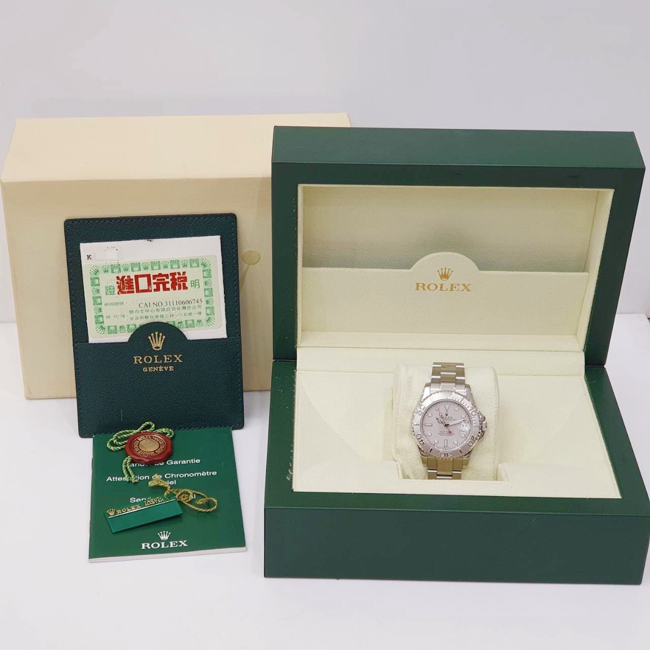 ROLEX 勞力士 Yacht-Master 168622 中遊艇 2003/06台灣AD 灰面紅針 鉑金錶圈噴砂面 錶徑35mm 自動上錬 不銹鋼材質 防水100米 原廠盒單齊全 保養完成
