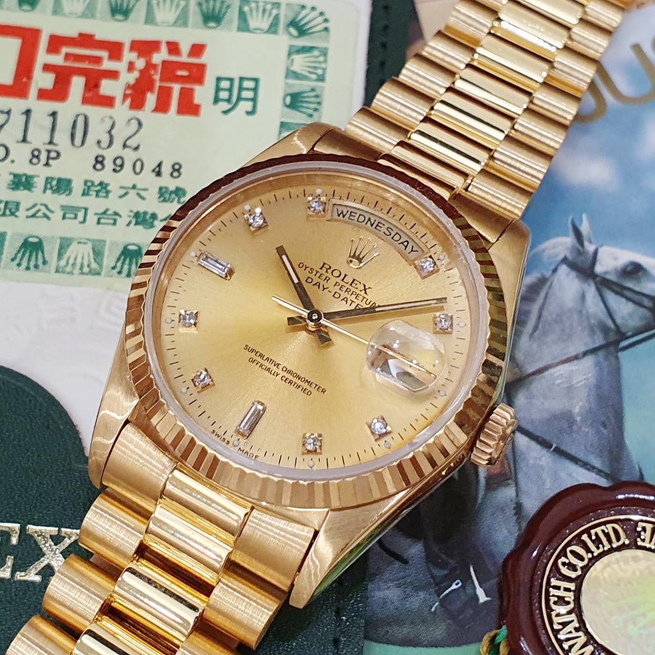 ROLEX勞力士 18238 Day-Date 18K金 金十鑽 6.9T鑽面 台灣AD 錶徑36mm 自動上鍊 18K金材質 防水100米 L字頭 原廠盒單齊全 保養完成