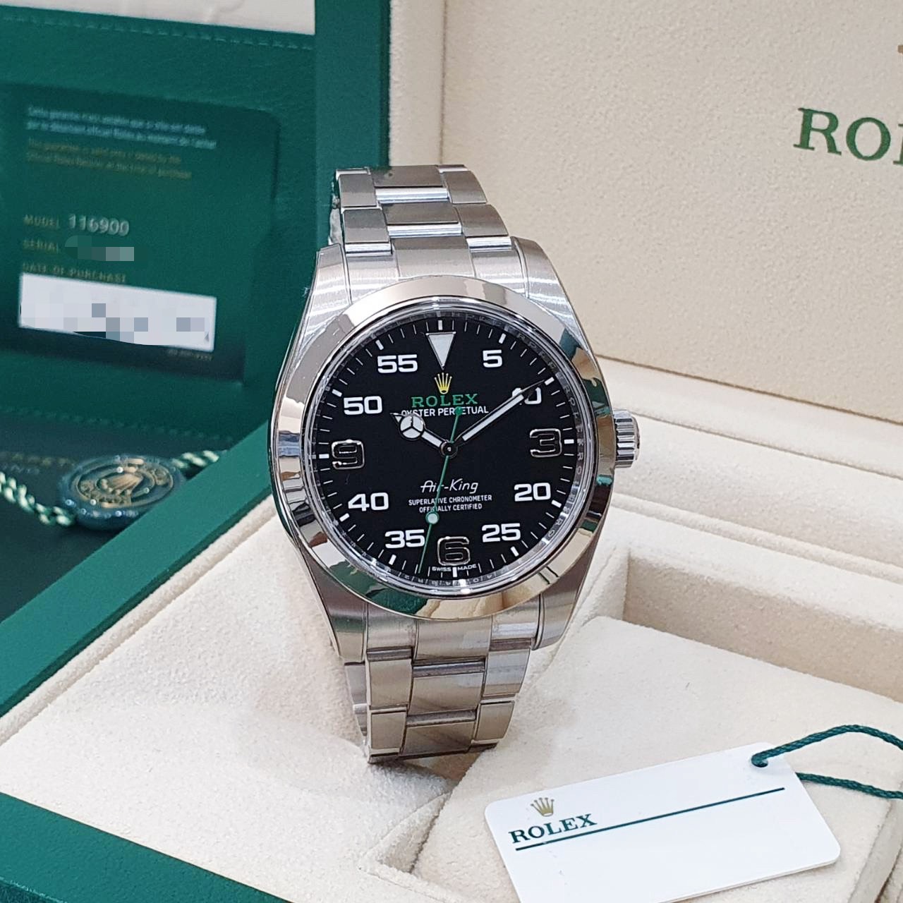 Rolex 勞力士 116900 Air-King 空中霸王 2021/08全配件 已貼膜 錶徑40mm 自動上鍊 不銹鋼材質 防水100米 原廠全配件