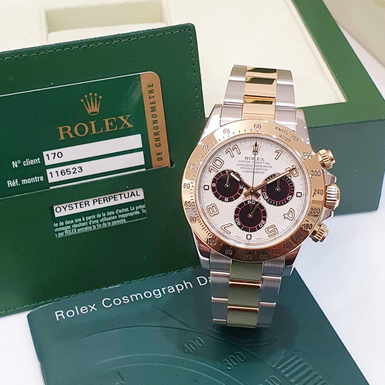 ROLEX 勞力士 116523 Daytona 白數字面 熊貓賽車面 2012/04 計時碼錶 錶徑40mm 自動上鍊 18K金及不鏽鋼 防水100米 原廠盒單齊全 保養完成