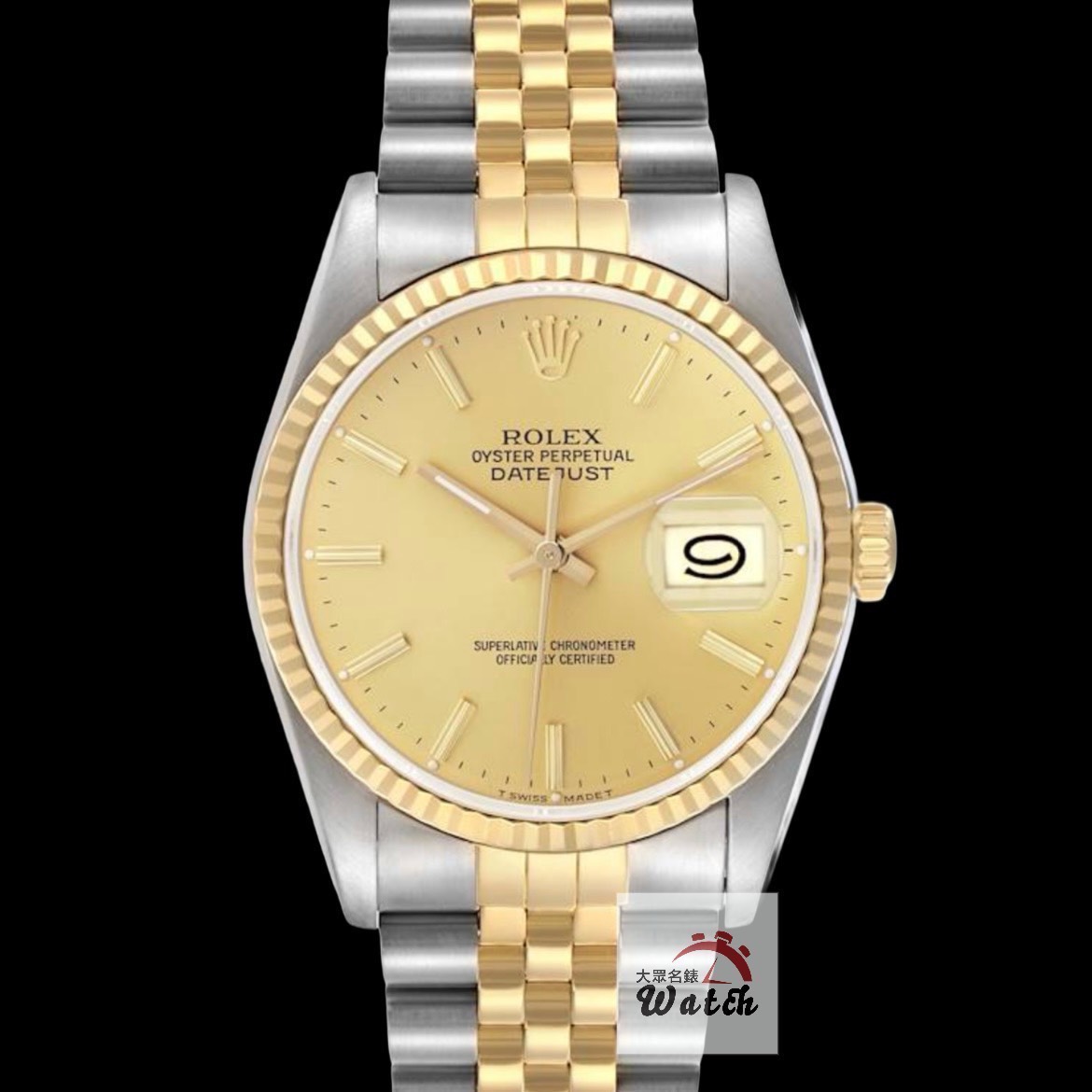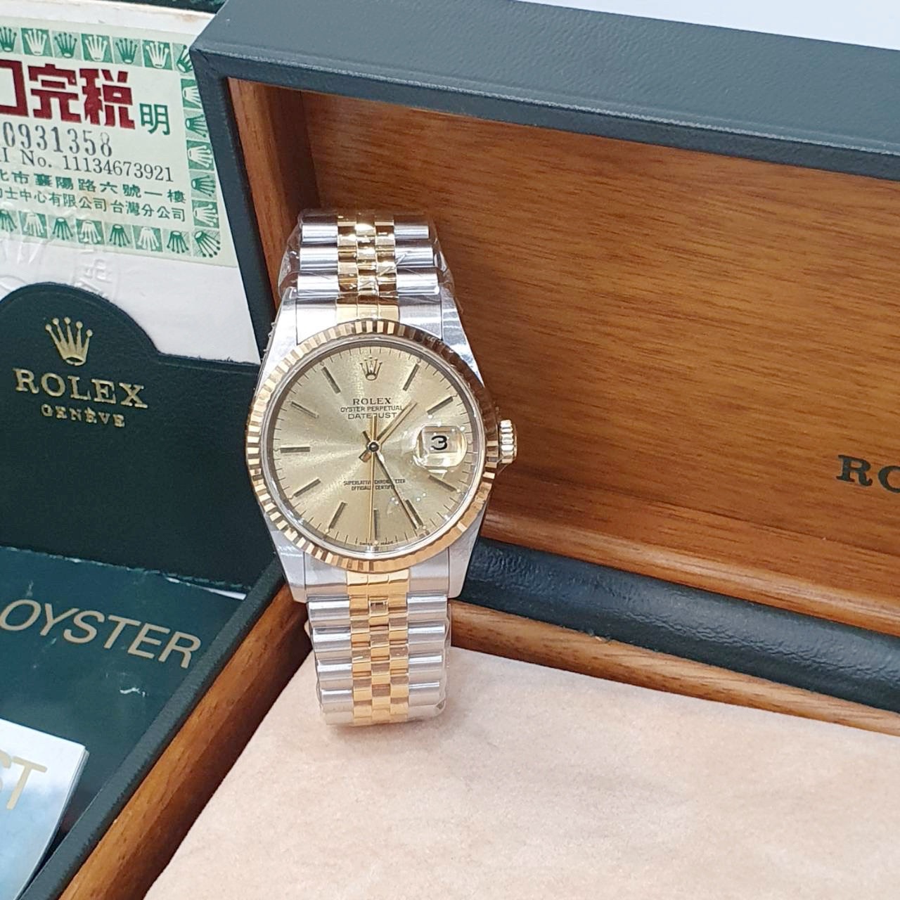 ROLEX勞力士 16233 Datejust 蠔式日誌 金面T柱 9.9成未使用新品 台灣AD全配件 原廠底蓋貼紙 錶徑36mm 自動上鍊 18K金及不鏽鋼 防水100米 S字頭 原廠全配件