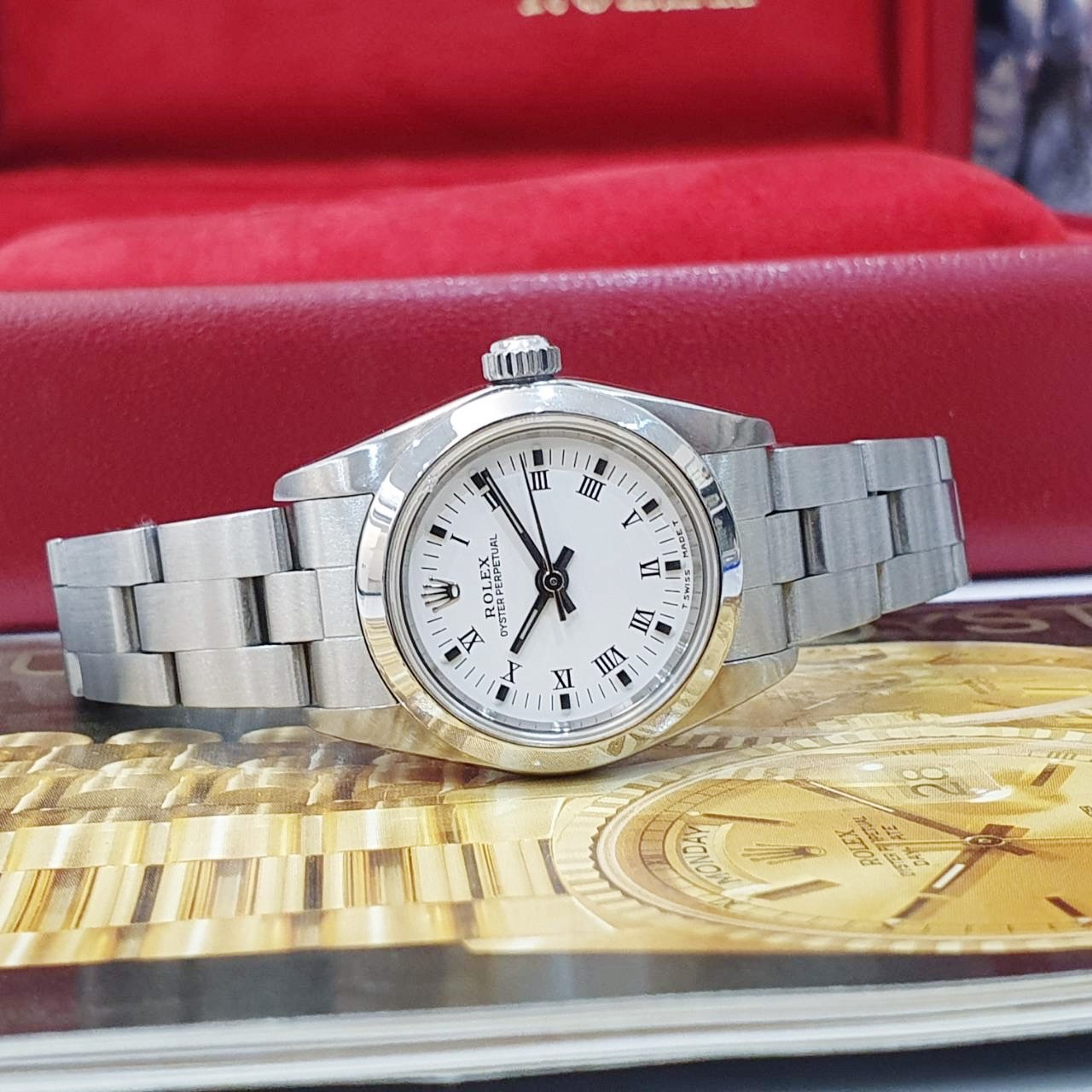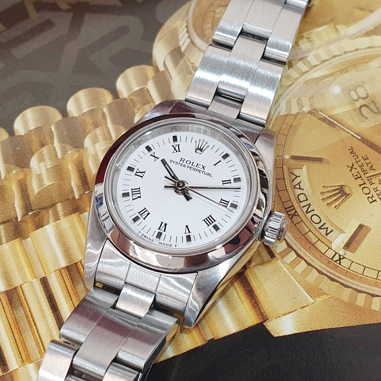 ROLEX 勞力士 Oyster Perpetual 76080 白色羅馬面 平光圈 原廠底蓋貼紙 錶徑26mm 自動上鍊 不銹鋼材質 防水100米 A字頭 缺證書 原廠盒裝 保養完成