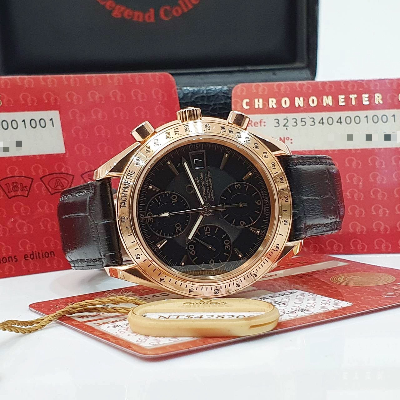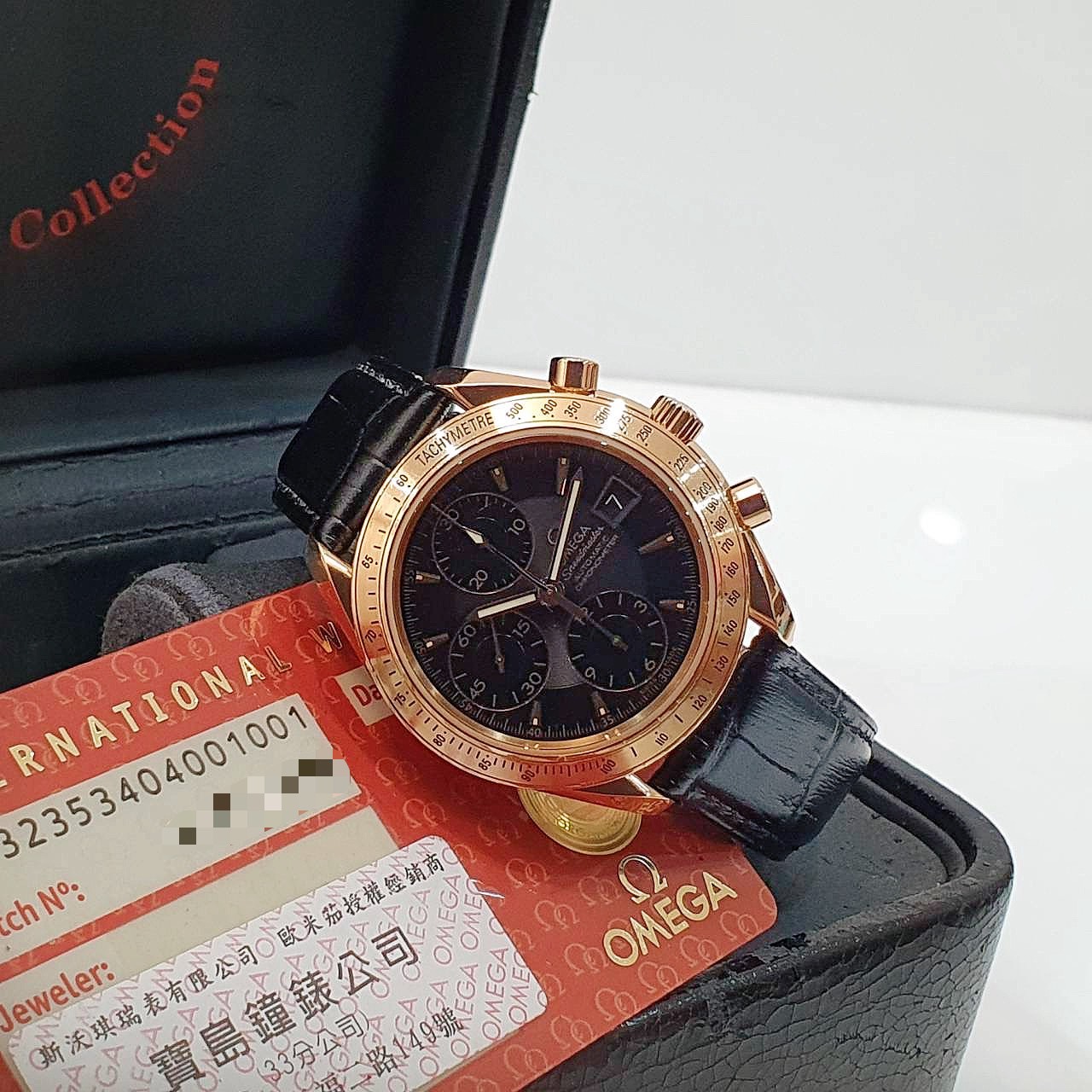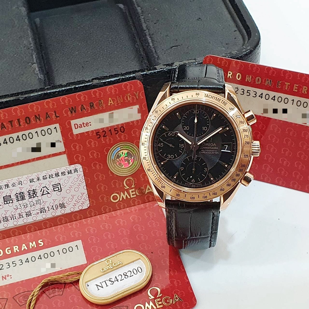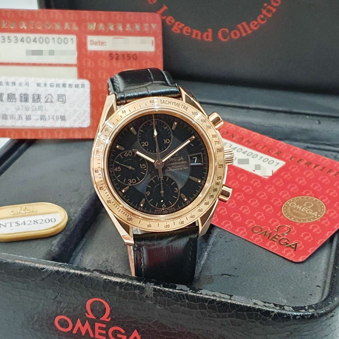 OMEGA歐米茄 323.53.40.40.01.001 超霸系列 黑面盤 18K玫瑰金 2013/02台灣AD 日期/計時/測速 原廠錶扣 代用皮帶 錶徑40mm 自動上鍊 防水100米 原廠盒單齊全 保養完成