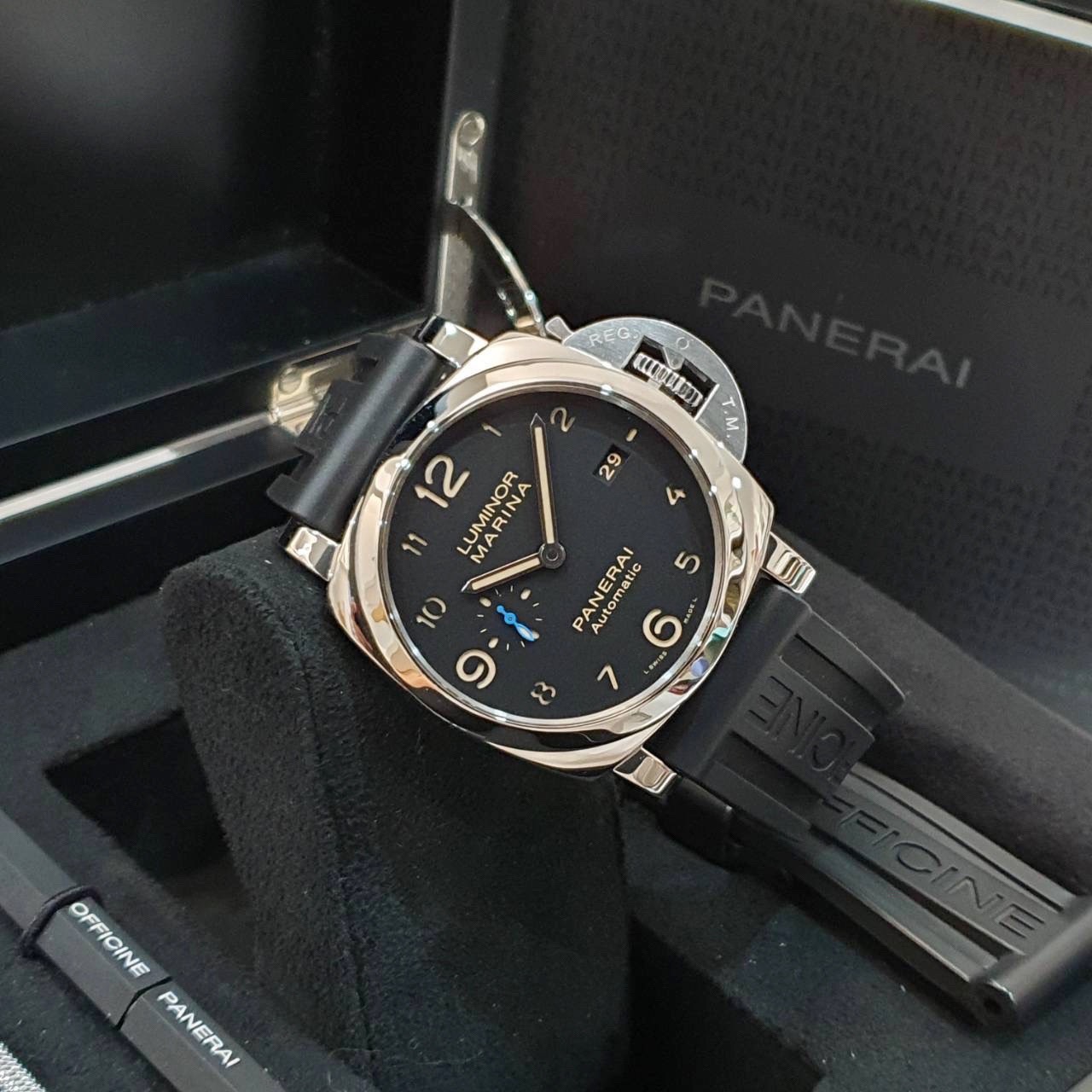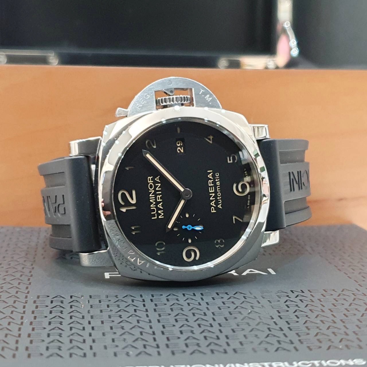 PANERAI沛納海 PAM01359 菸草三明治面盤 2017/05 藍色小秒針 龍頭護橋 原廠膠帶 原廠扣 底蓋裸空 錶徑44mm 自動上鍊 不鏽鋼材質 防水300米 原廠盒單齊全 保養完成
