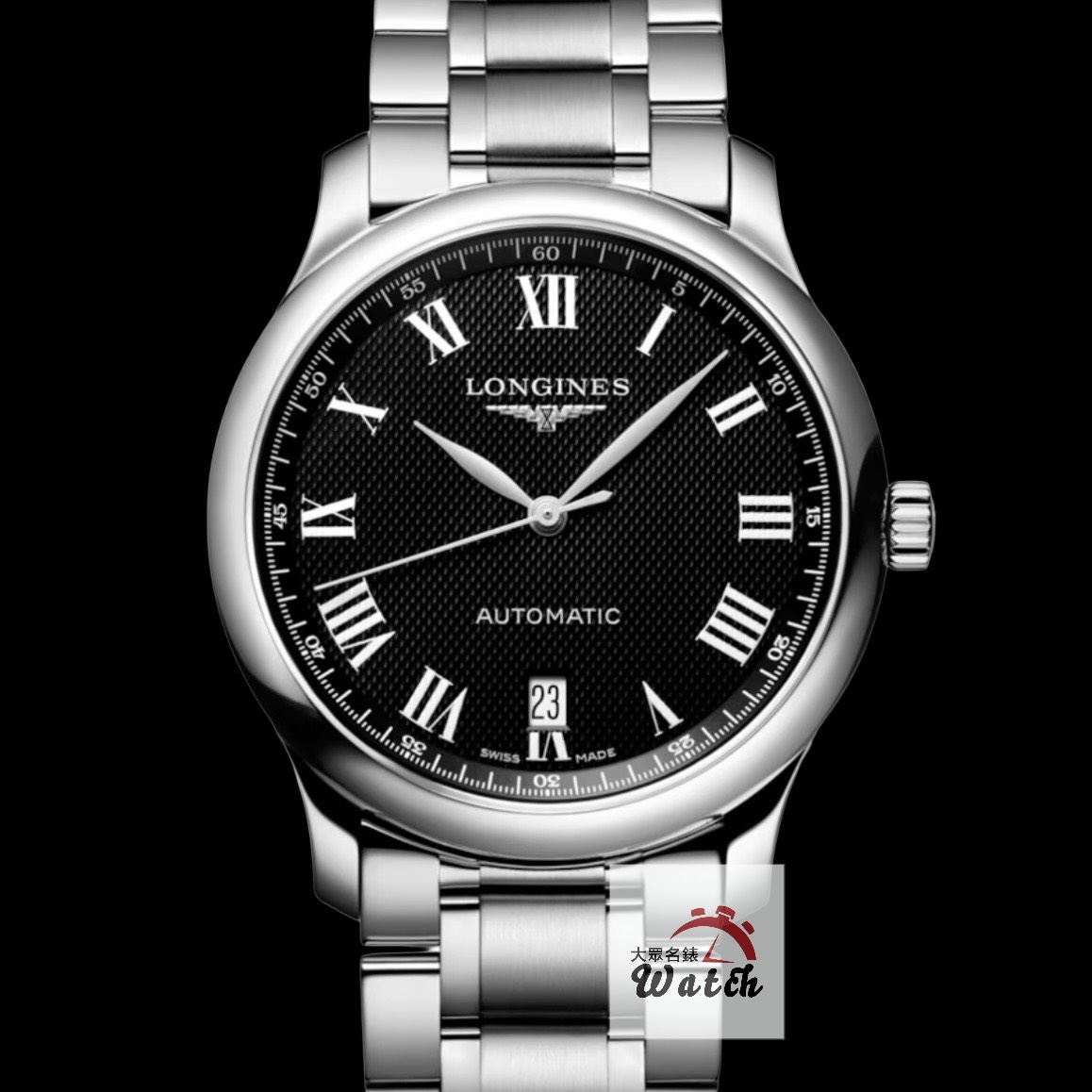LONGINES浪琴 L2.628.4.51.6巨擎系列 2024/02 未使用新品 原廠保固至2029/02 麥粒飾紋黑色羅馬面盤 錶徑38.5mm 自動上鍊不鏽鋼材質 防水30米 原廠盒單齊全