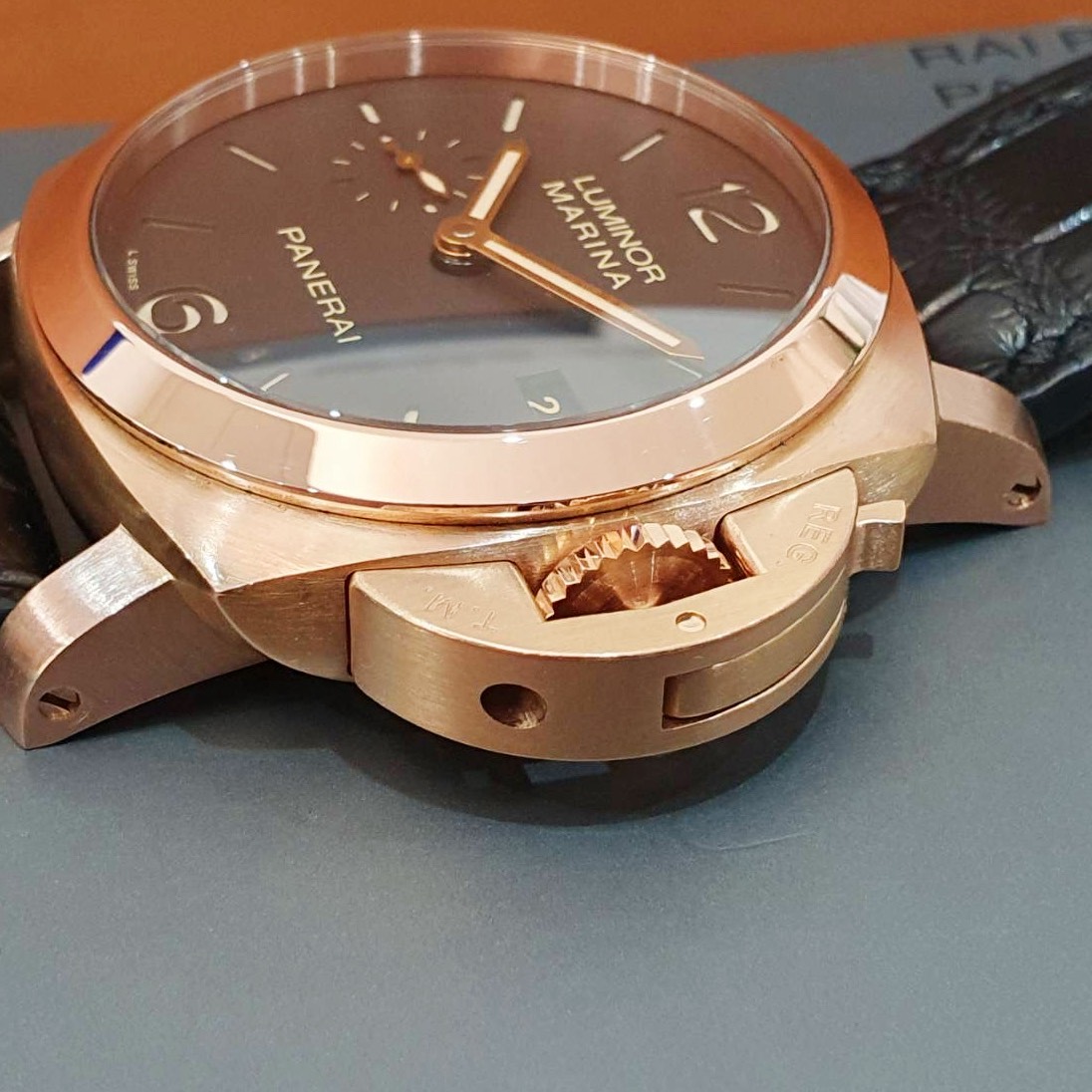 PANERAI沛納海 PAM00393 LUMINOR1950系列 2014/01 18K玫瑰金 煙草三明治面盤 底蓋裸空 原廠皮帶錶扣 錶徑42mm 自動上鍊 18K玫瑰金材質 防水50米 原廠盒單齊全 保養完成