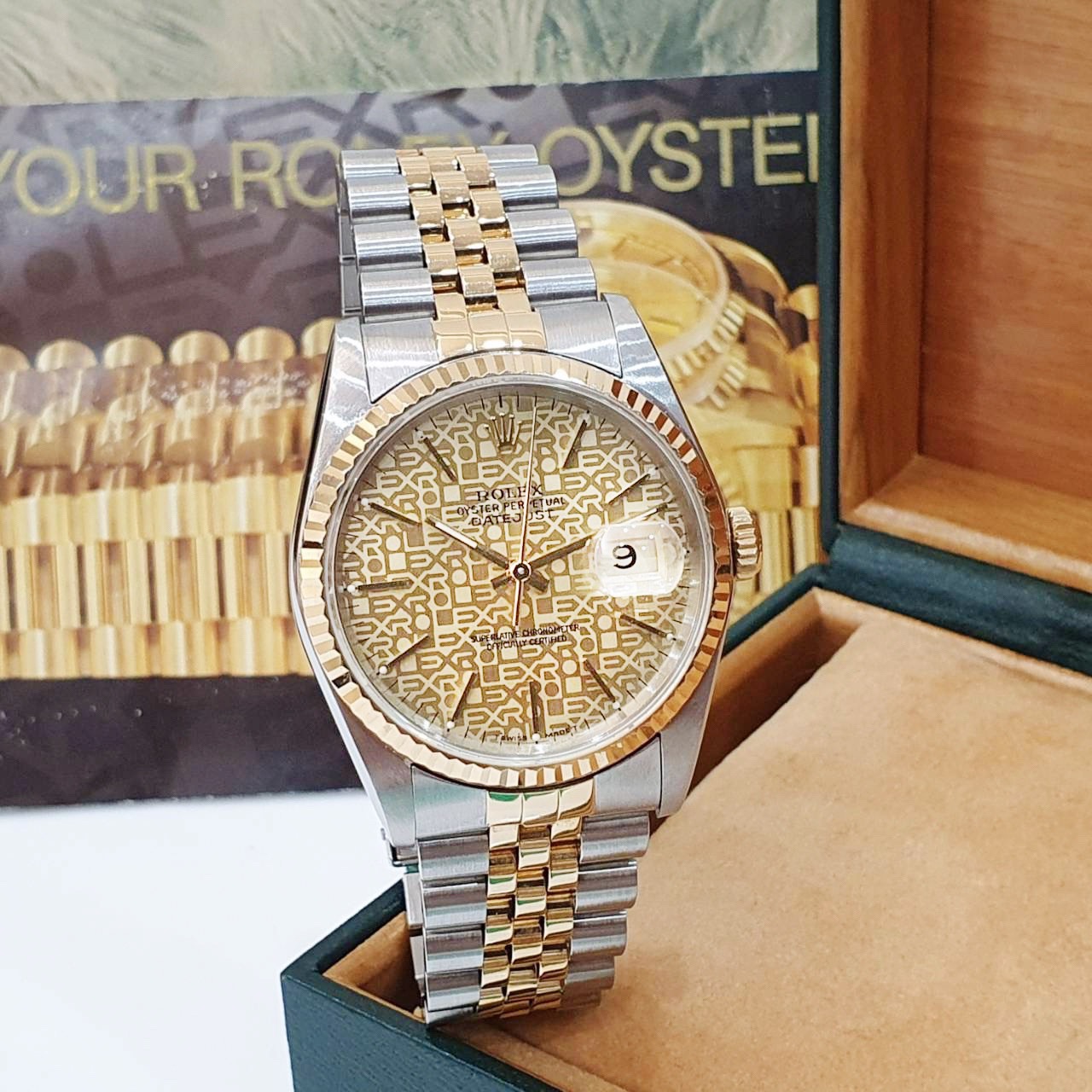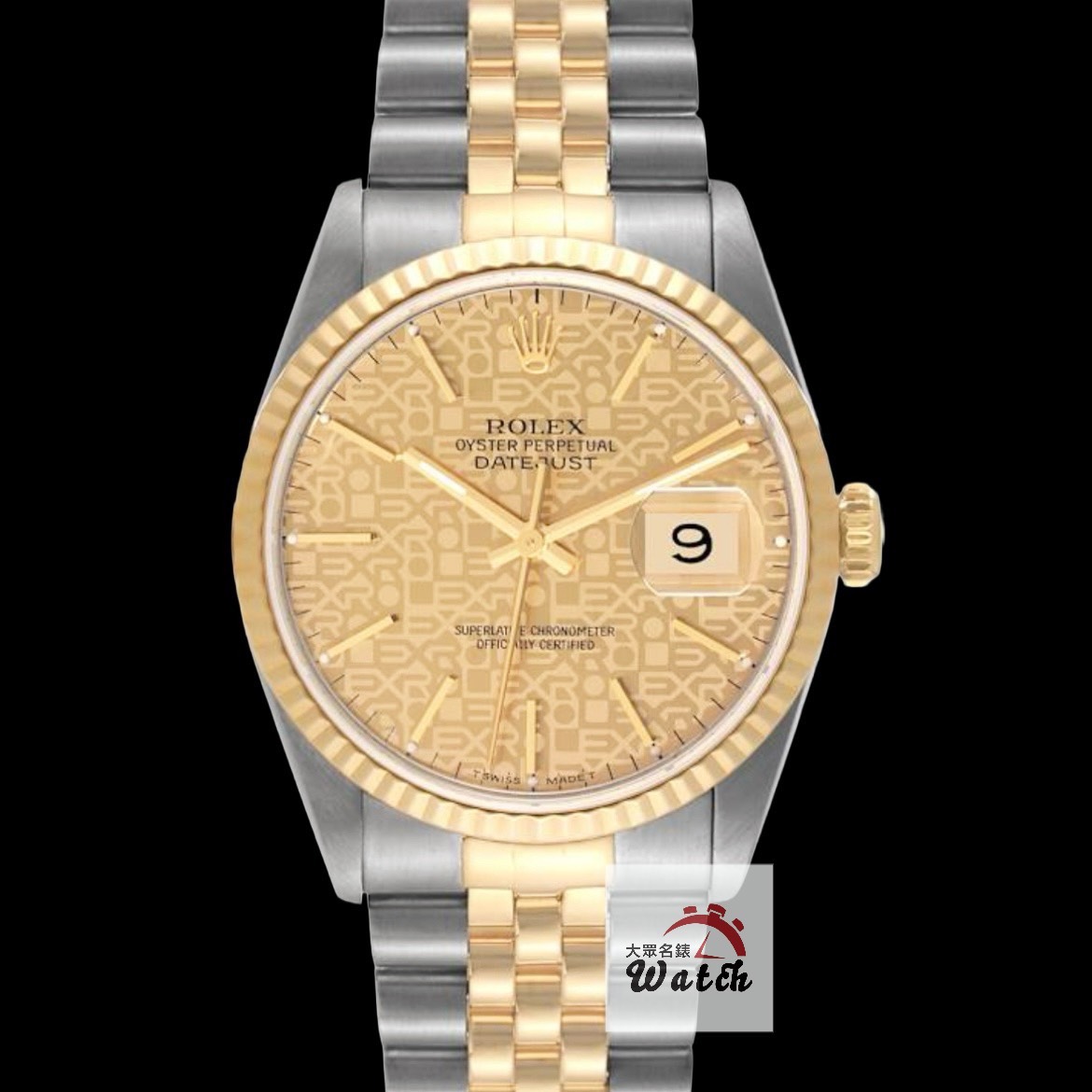 ROLEX 勞力士 16233 Datejust 蠔式日誌 印刷紀念T柱面 錶徑36mm 自動上鍊 18K金及不鏽鋼 防水100米 R字頭 缺證書 原廠盒裝 店保卡 保養完成