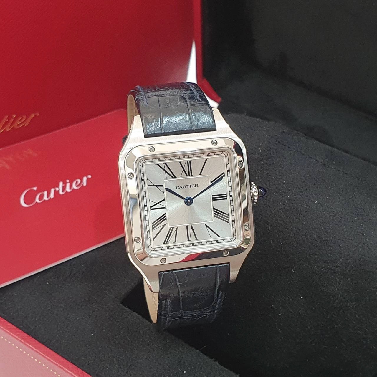 Cartier卡地亞 SANTOS-DUMONT 山度士系列 WSSA0022 銀面羅馬時標 2021/10 大型款 原廠皮帶/扣 錶徑43.5x31.4mm 石英機芯 不鏽鋼材質 防水30米 原廠盒單齊全